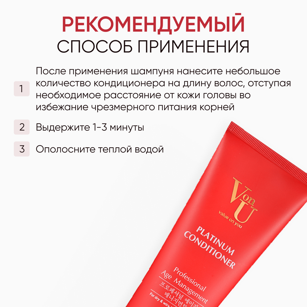10 цен на Кондиционер для волос смягчение и увлажнение Корея / Бальзам для сухих, жестких, пористых, вьющихся и седых волос / Platinum Conditioner Von-U 200 мл