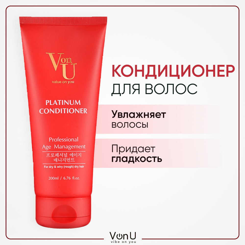 Кондиционер для волос смягчение и увлажнение Корея / Бальзам для сухих, жестких, пористых, вьющихся и седых волос / Platinum Conditioner Von-U 200 мл информация: