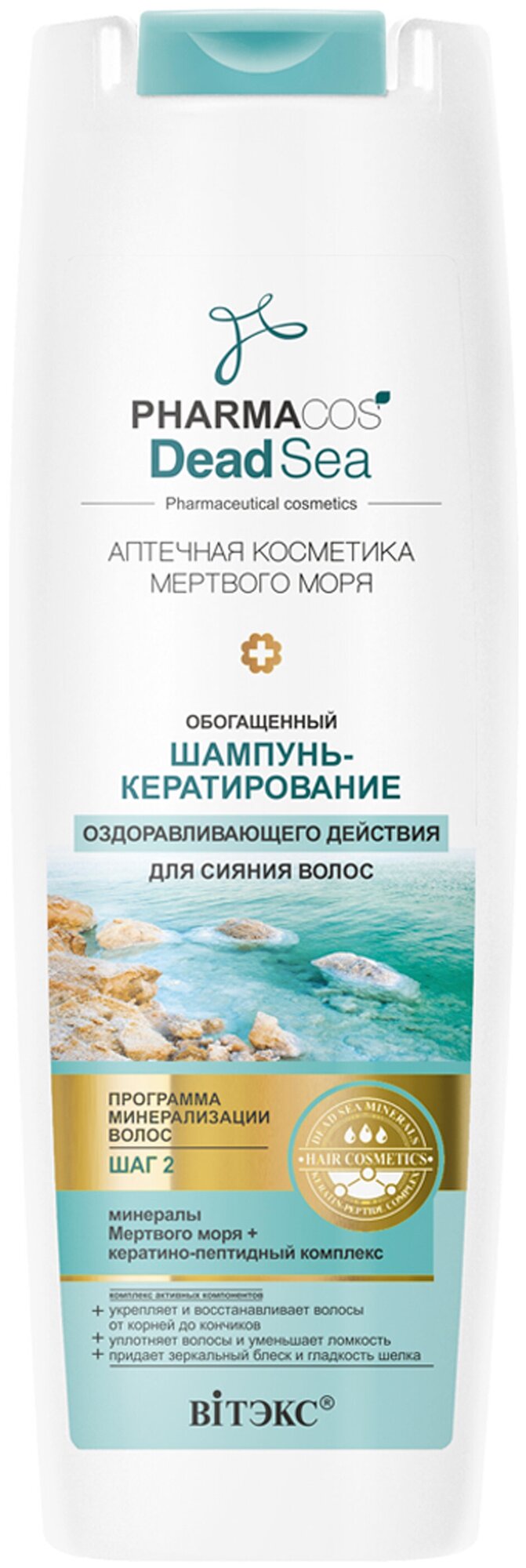 Витэкс шампунь-кератирование Pharmacos Dead Sea Аптечная косметика Мертвого моря Оздоравливающего действия для сияния волос 400 мл информация: