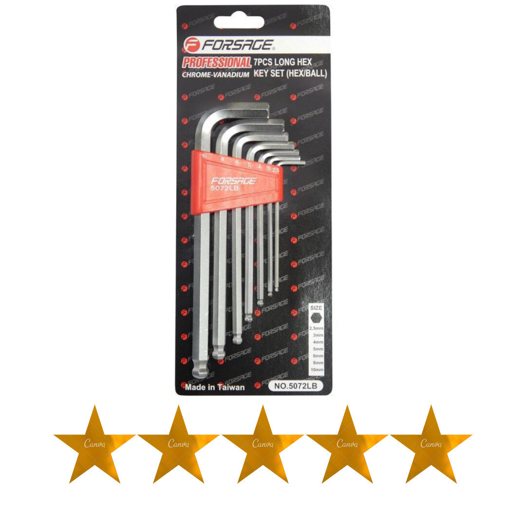 Отзывы на Forsage Набор ключей Г-образных 6-гранных длинных с шаром 7пр. в пластиковом держателе 6499 F-5072LB