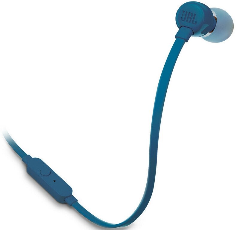 Проводные наушники JBL TUNE 110 blue / 3.5 мм / вкладыши / звук PureBass Sound, Stereo / внутриканальные, микрофон / плоский кабель с защитой от спутывания