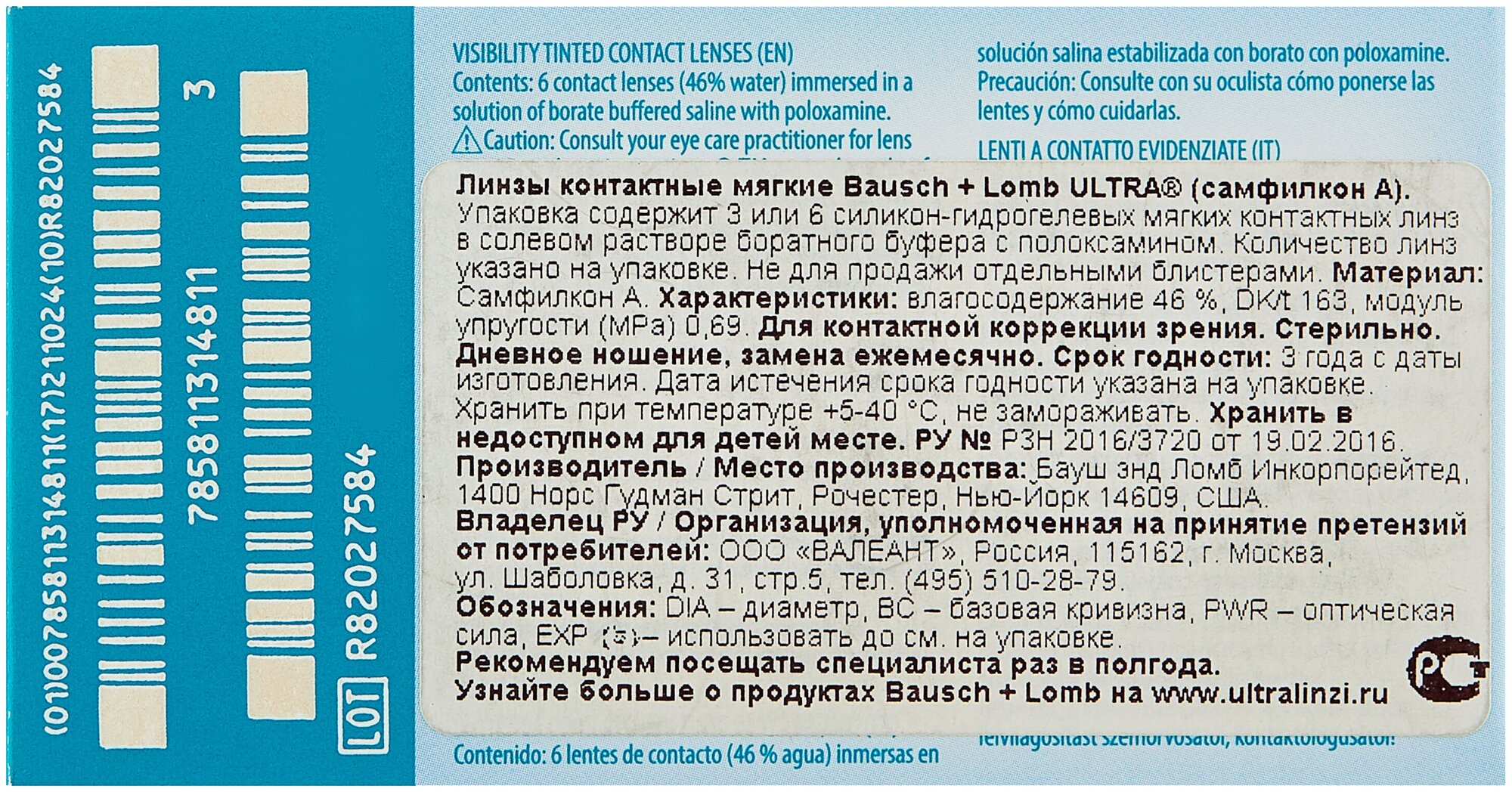Ultra 6 линз В упаковке 6 штук Оптическая сила -9.5 Радиус кривизны 8.5 информация: