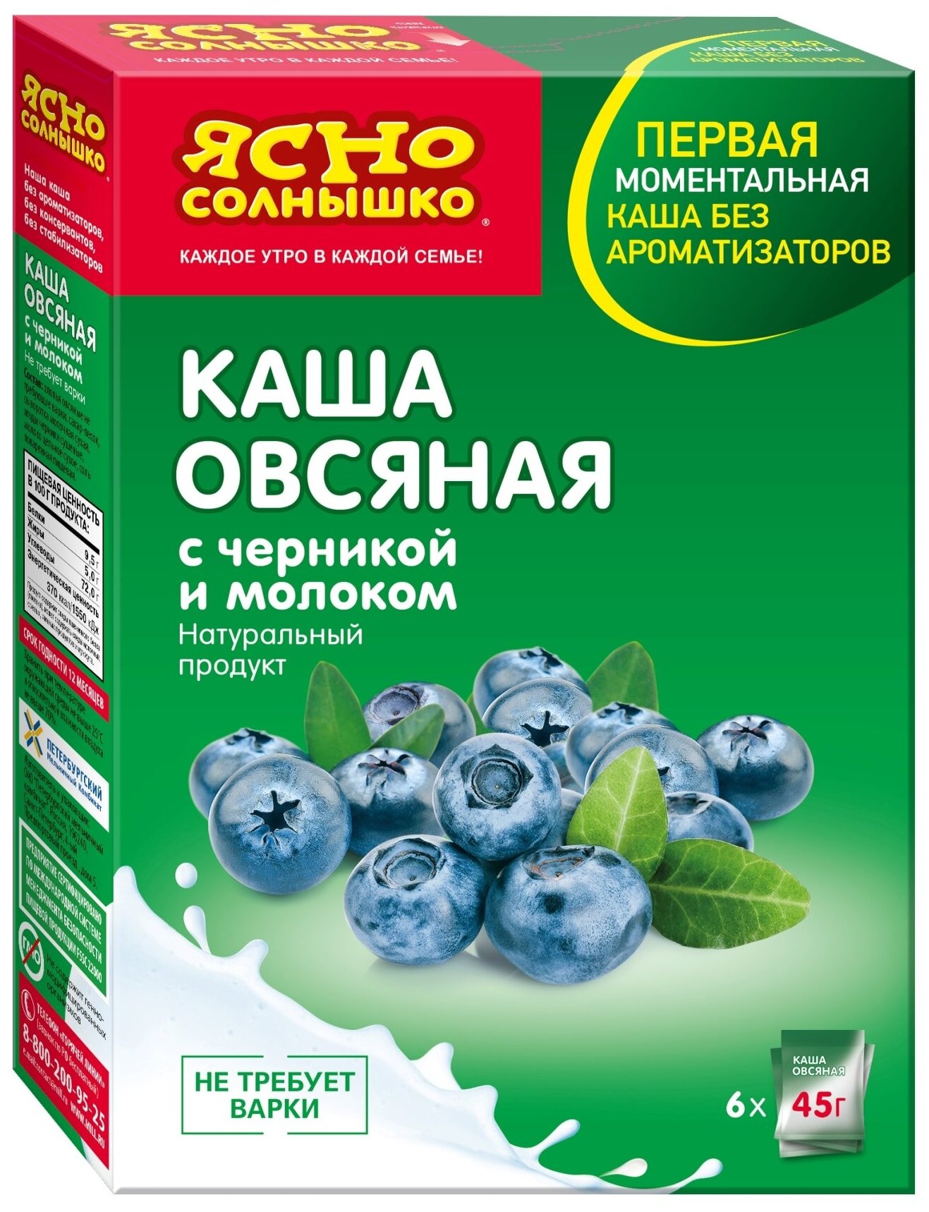 НК Каша овс. с черникой и молоком кор. 6*45 г т/м Ясно Солнышко информация: