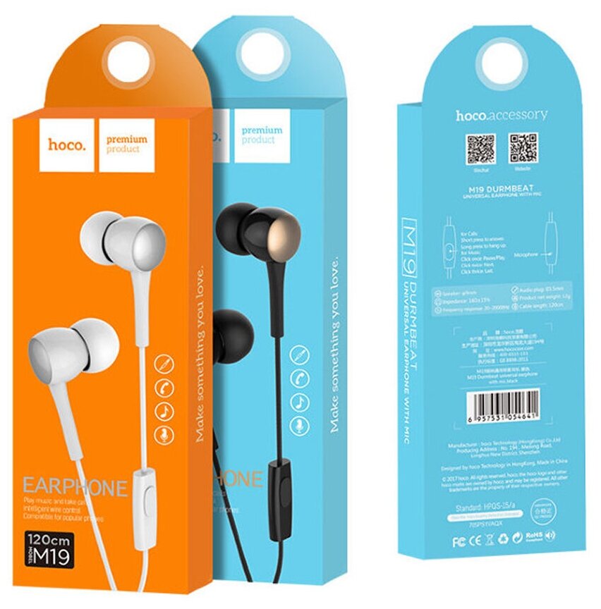 Гарнитура HOCO M19 Drumbeat 3.5мм, внутриканальная, 1.2м (белый), шт M19