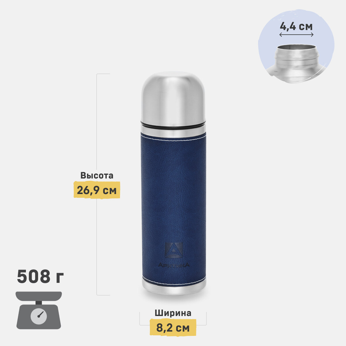 Ark-108-700-Синий -Кожа Термос бытовой, вакуумный, питьевой, тм "Арктика", 700 мл, 2 437 ₽