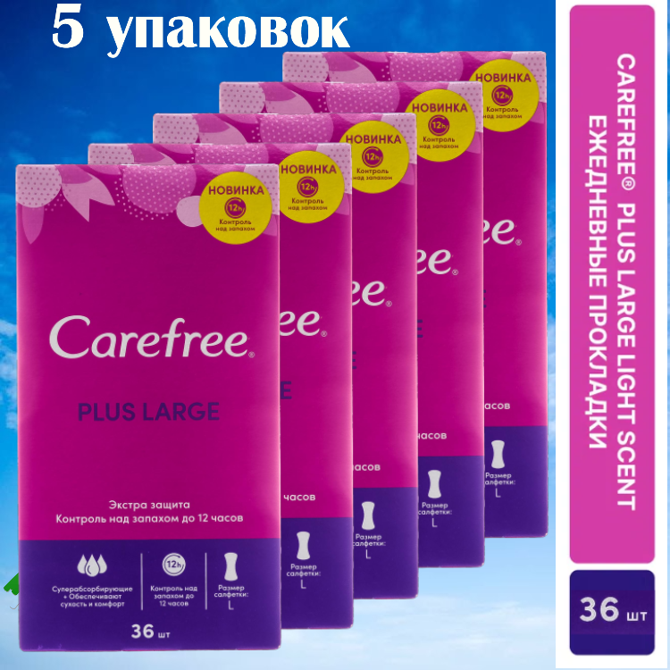 10 цен на Ежедневные прокладки CAREFREE PLUS LARGE экстра защита, с легким ароматом, размер L. 3 капли. Производитель Johnson&Johnson.Италия. 5 уп. х 36 шт.