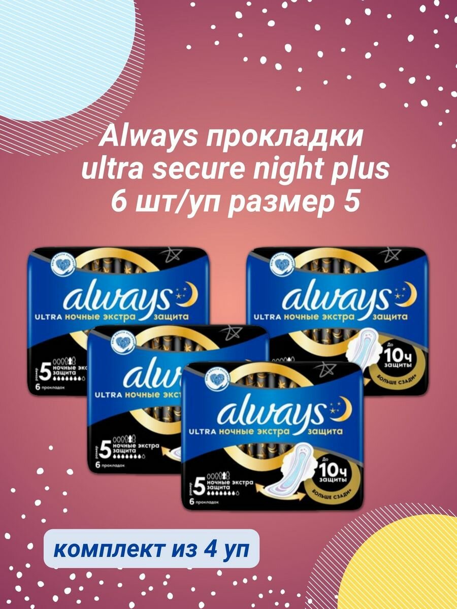 Гигиенические прокладки Always Ultra Secure Night, (размер 5), с крылышками, 6 шт, Супервпитывающие, тонкие