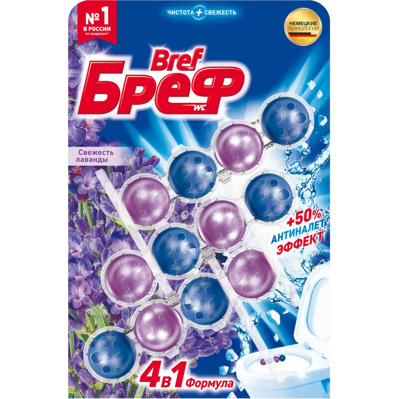 Отзывы на Комплект 2 штук, Блок для унитаза BREF Сила-Актив Свежесть Лаванды 3х50г на блистере