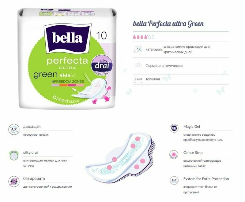 Прокладки женские Bella Perfecta Ultra Green BE-013-RW10-279, 10 шт информация: