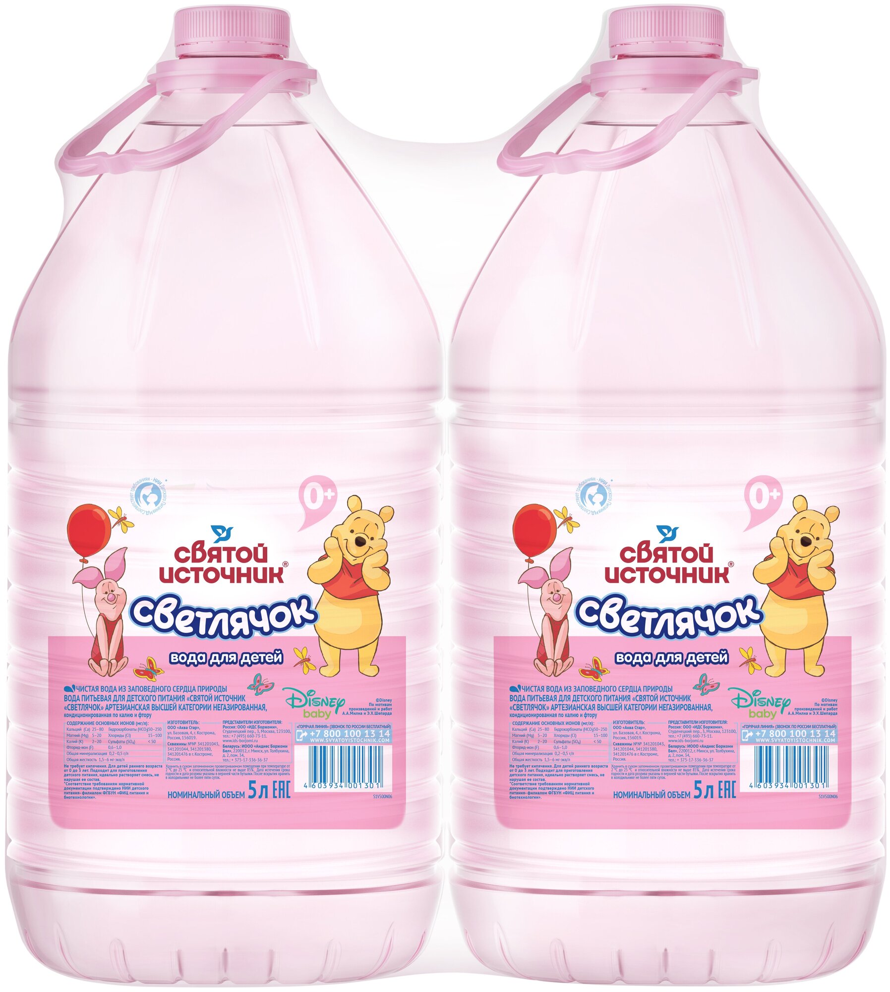 Вода питьевая для детского питания Святой Источник "Светлячок" артезианская высшей категории негазированная, 5л (Упаковка из 2 шт.) информация: