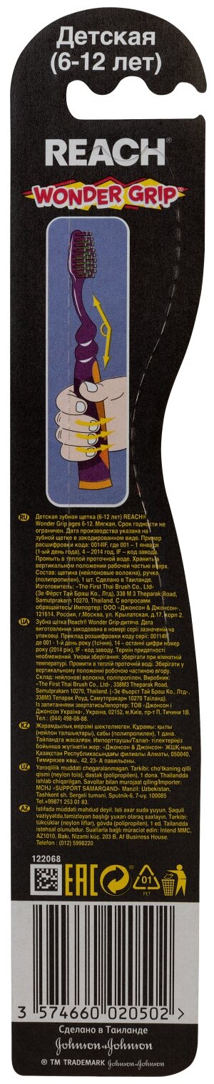 Зубная щетка детская, Reach, Wonder Grip, 6-12 лет