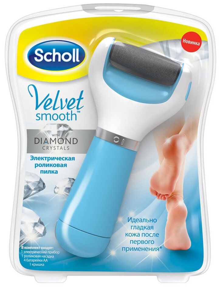 Отзывы на Электрическая роликовая пилка для педикюра Scholl Velvet Smooth Diamond Crystals, голубой/белый