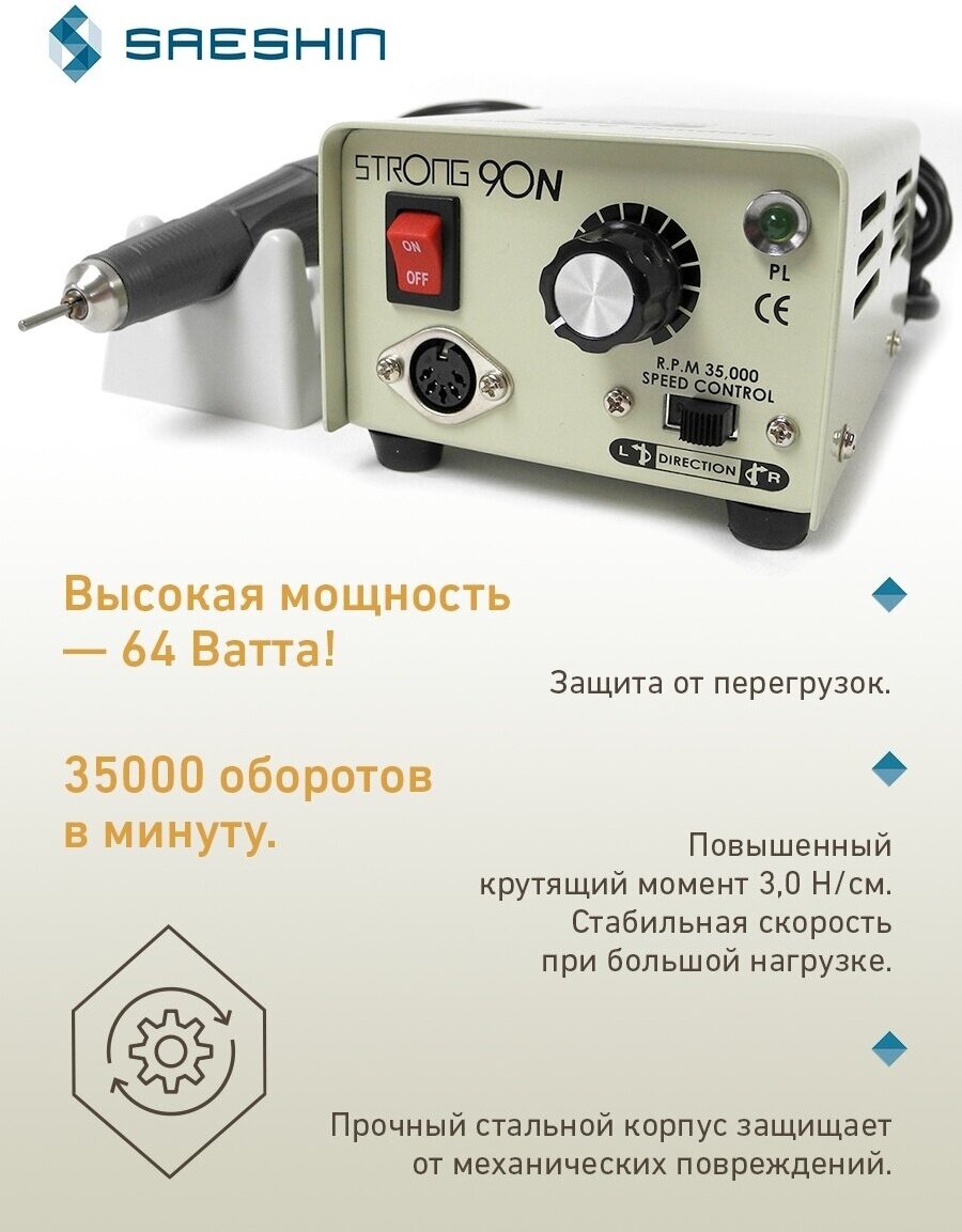 Аппарат для маникюра и педикюра Strong 90N/105L, 35000 об/мин, Оригинал | Ю.Корея информация: