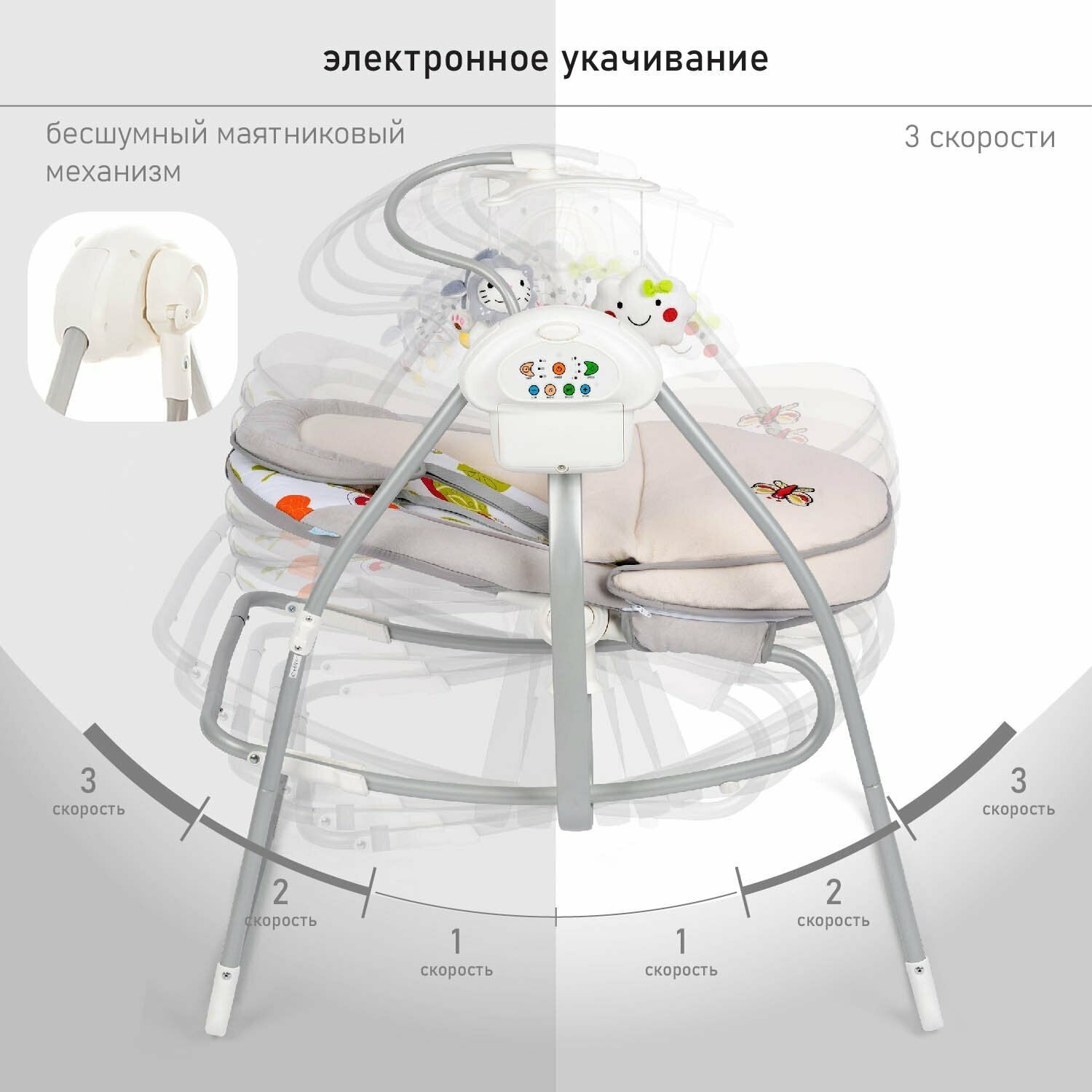 Электрокачели для новорожденного кресло качалка новогодние подарки, для малыша до 12 кг, с пультом управления, серый