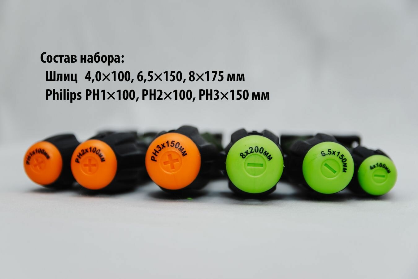 Дело техники 728060 728060_набор отвёрток! c 3-комп.рук. (SL:4.0x100, 6.5x150, 8.0x175, PH1x100, PH2x100, PH3x150) 6шт.\ информация: