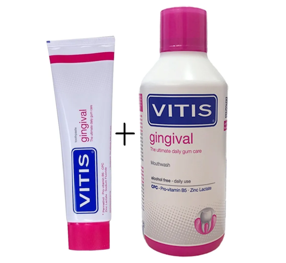 10 цен на Вместе дешевле! Комплект VITIS Gingival для защиты десен зубная паста 100мл и ополаскиватель 500мл
