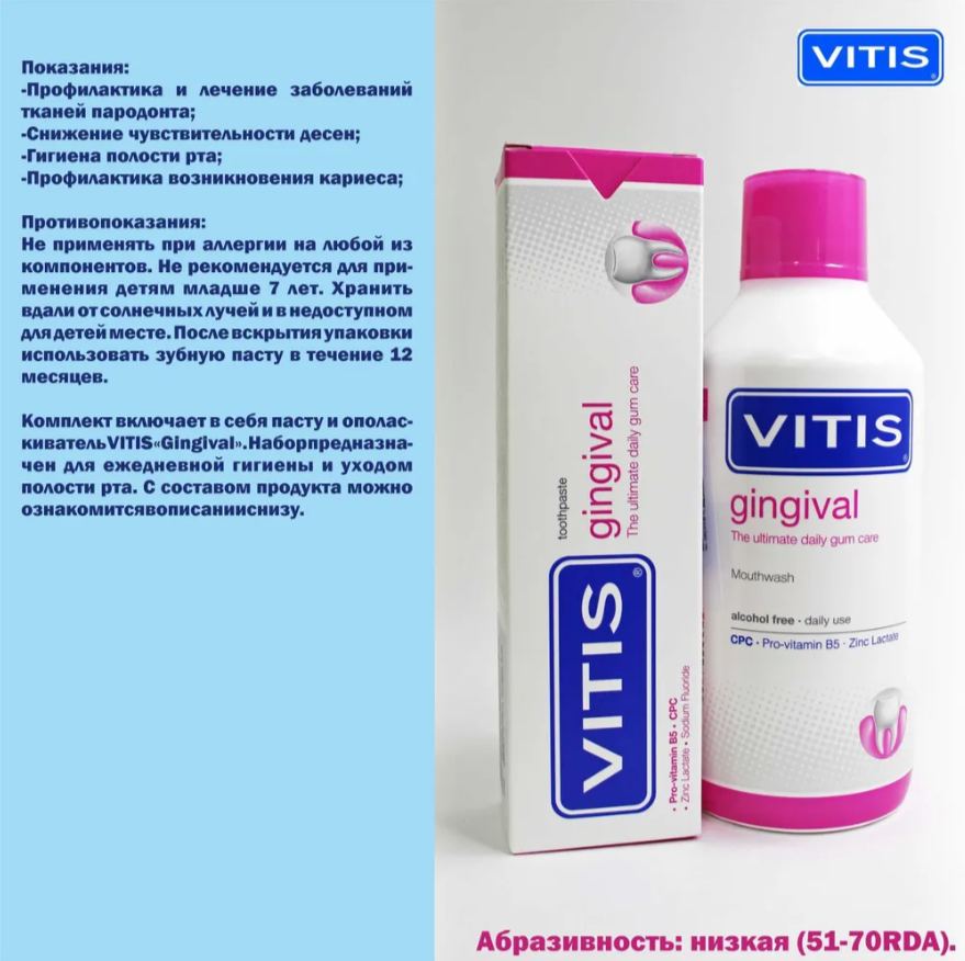 Отзывы на Вместе дешевле! Комплект VITIS Gingival для защиты десен зубная паста 100мл и ополаскиватель 500мл