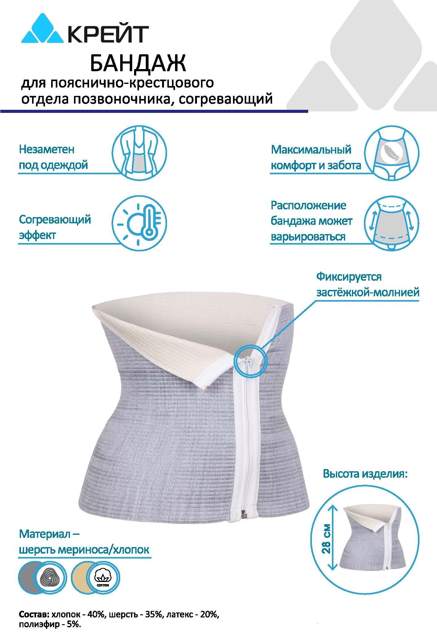 Пояс для спины согревающий на молнии Крейт" №6 информация: