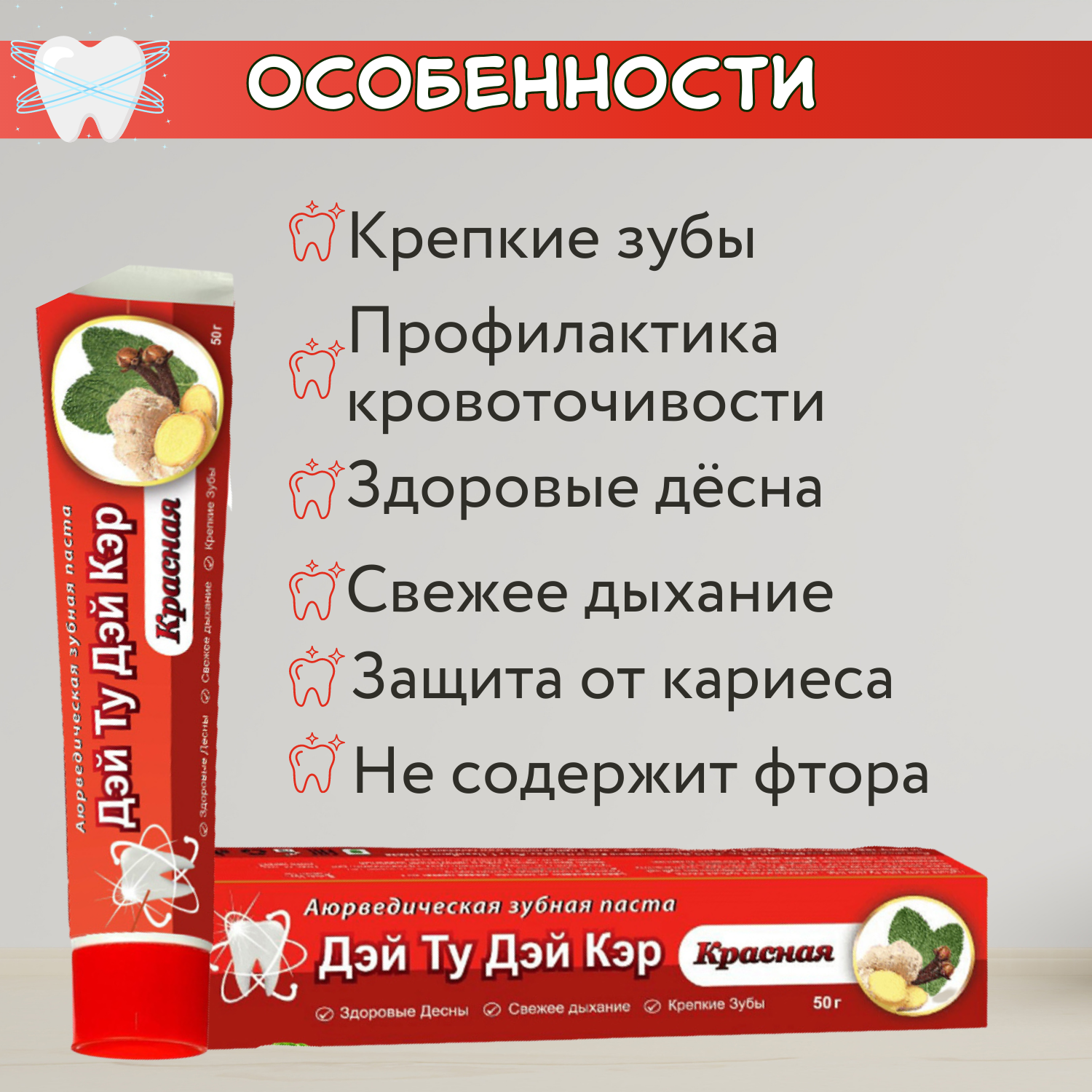 Аюрведическая Зубная паста красная 5 шт - 50 гр Дэй Ту Дэй Кэр информация:
