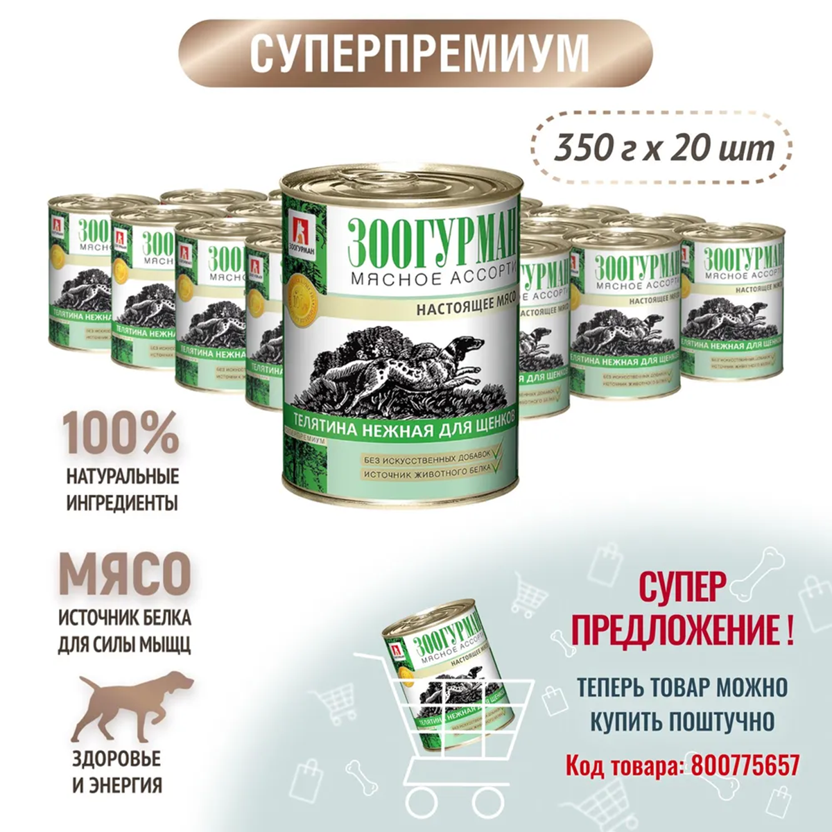 Зоогурман для щенков Мясное ассорти Телятина нежная, консервы 350г (20 банок)