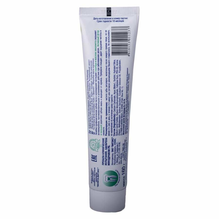 Витэкс Зубная паста DENTAVIT фторсодержащая Антимикробная защита с серебром и эвкалиптом 160г информация: