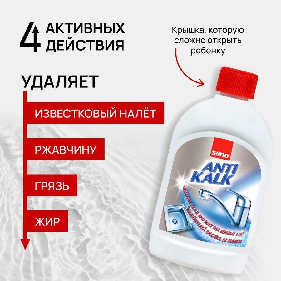 SANO Анти Калк Средство для чистки кранов и сантехники (раковин, унитазов), 500мл