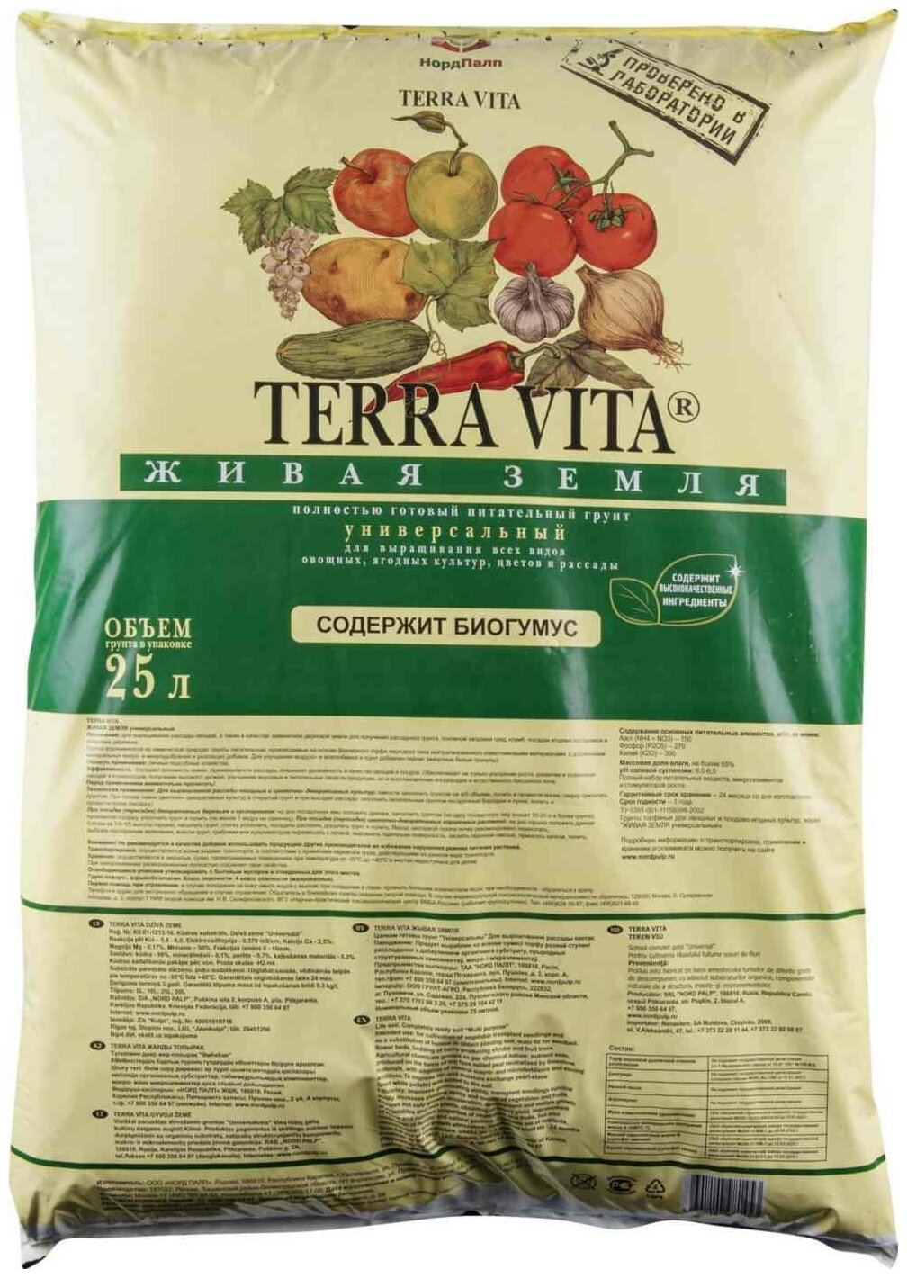 Грунт Terra Vita "Живая Земля" универсальный, 25л, для овощных, ягодных культур, цветов и рассады