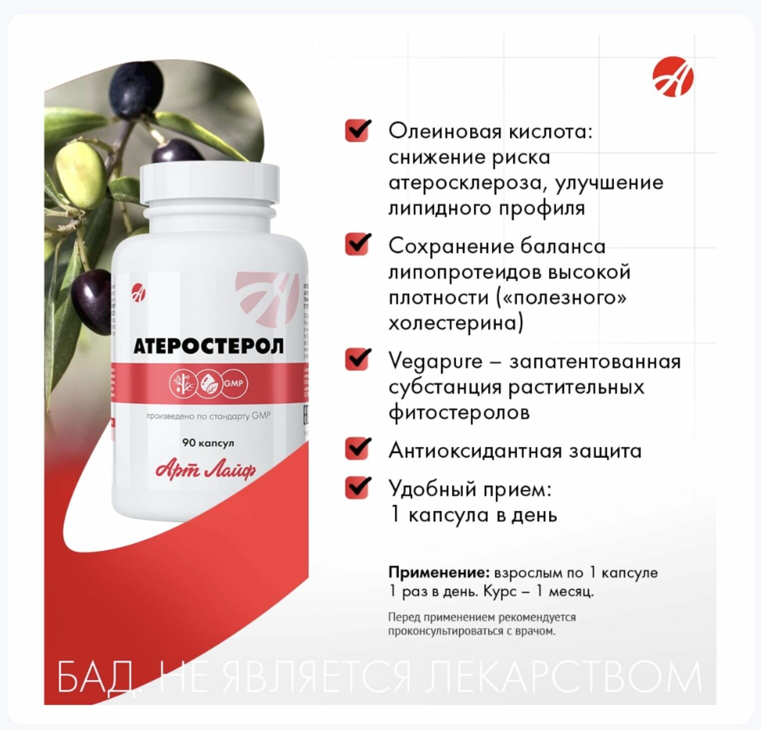 Отзывы на Атеростерол для поддержания нормального уровня холестерина, 90капс, Арт Лайф