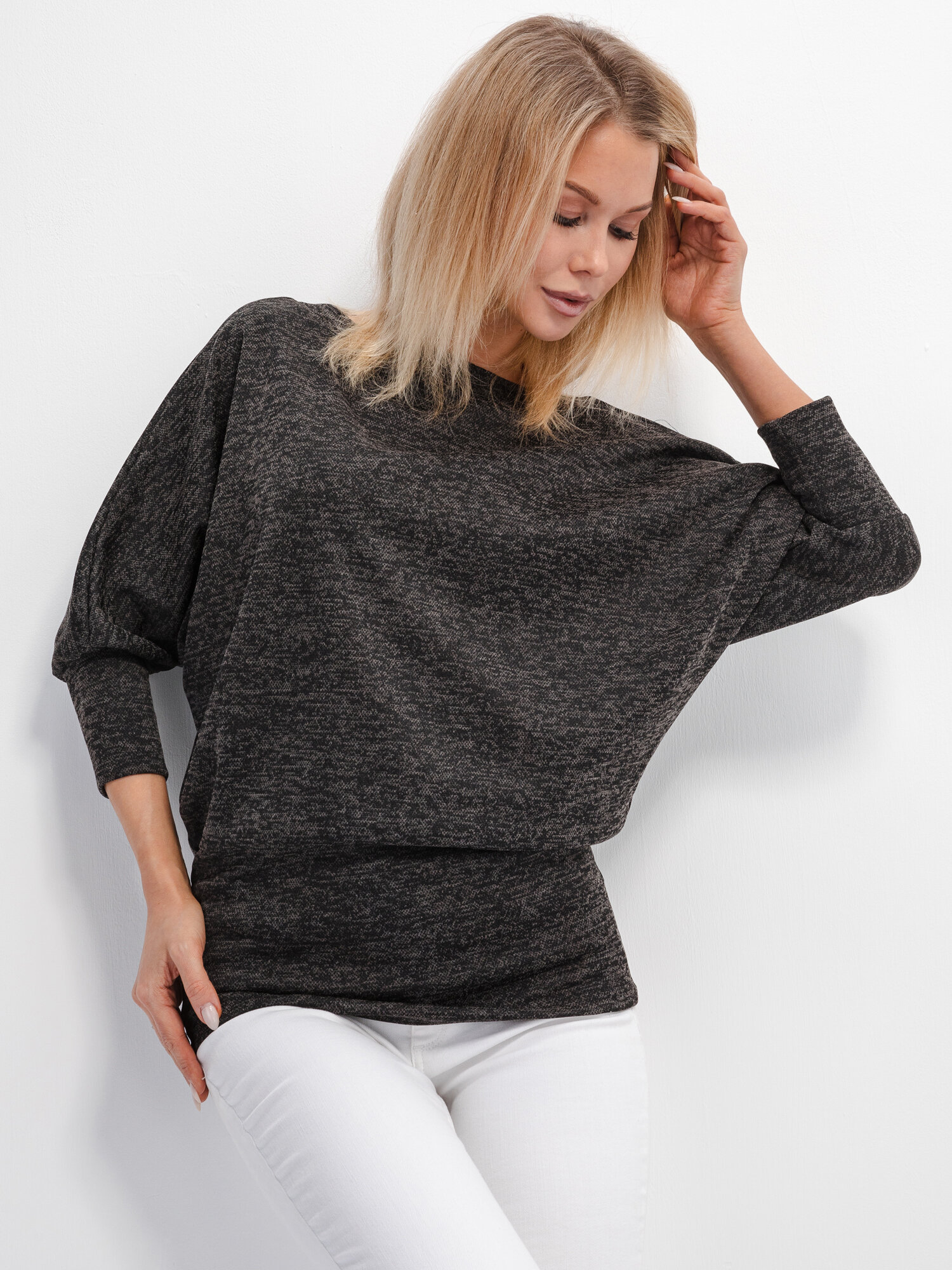 10 цен на Джемпер летучая мышь, черный меланж, 60