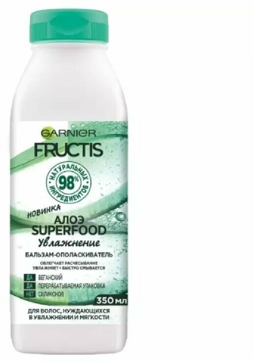 Отзывы на Garnier Fructis Бальзам-ополаскиватель для волос Super Food Алоэ, "Увлажнение", 350 мл, 4 шт.