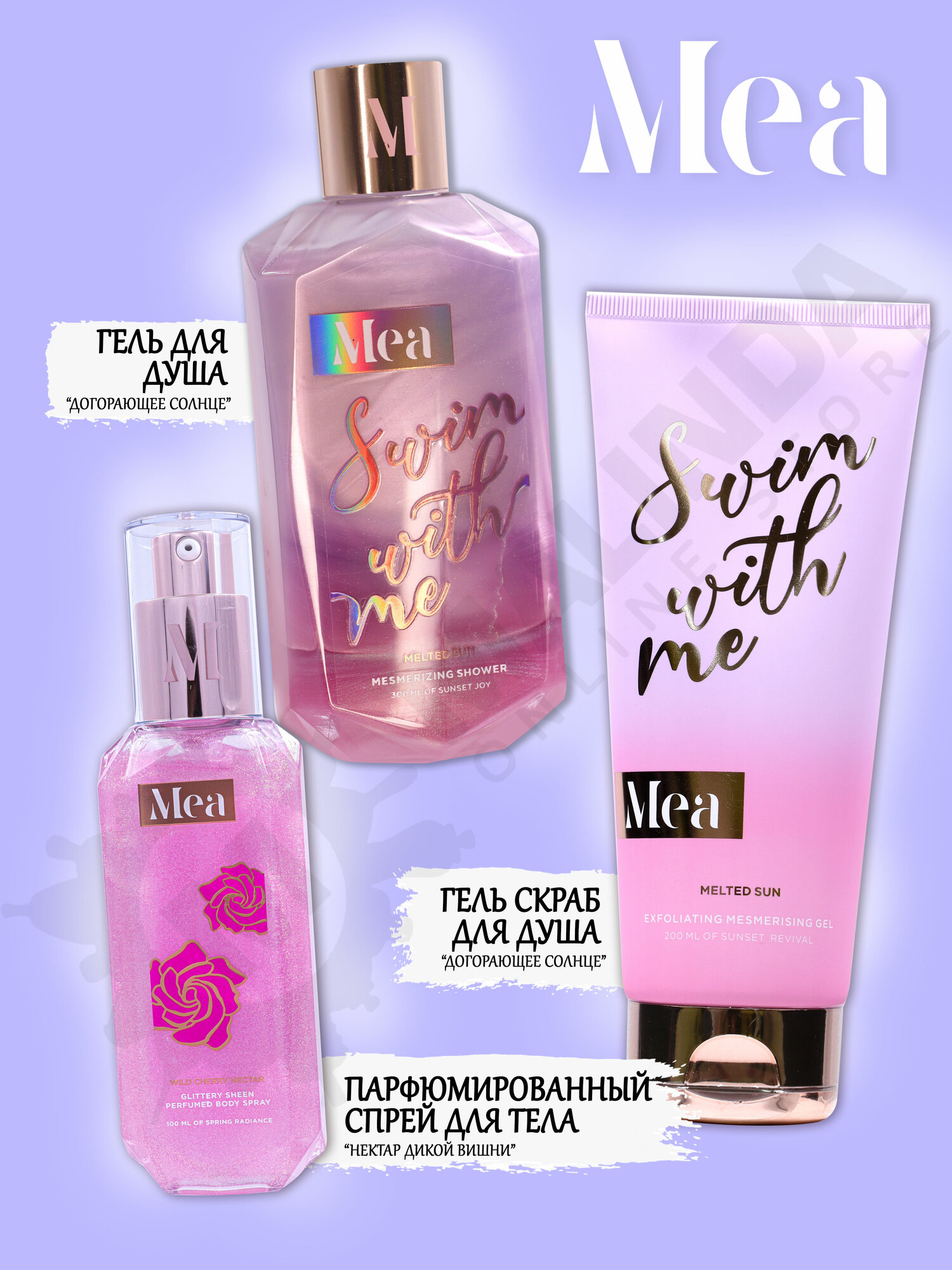 10 цен на MEA Набор косметики № 35 (гель-скраб,молочко для тела, парфюмированный спрей для тела)