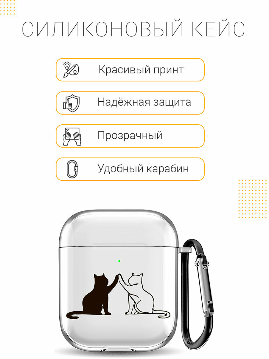 Отзывы на Прозрачный чехол для наушников Apple AirPods 1 / 2 с 3D принтом "Cats"