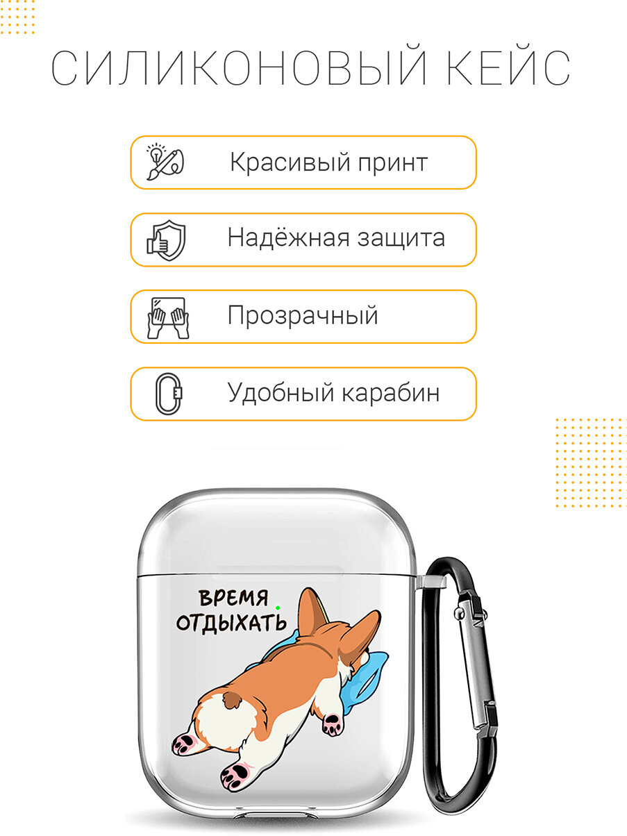 Прозрачный чехол для наушников Apple AirPods 1 / 2 с 3D принтом "Relax for corgi" информация: