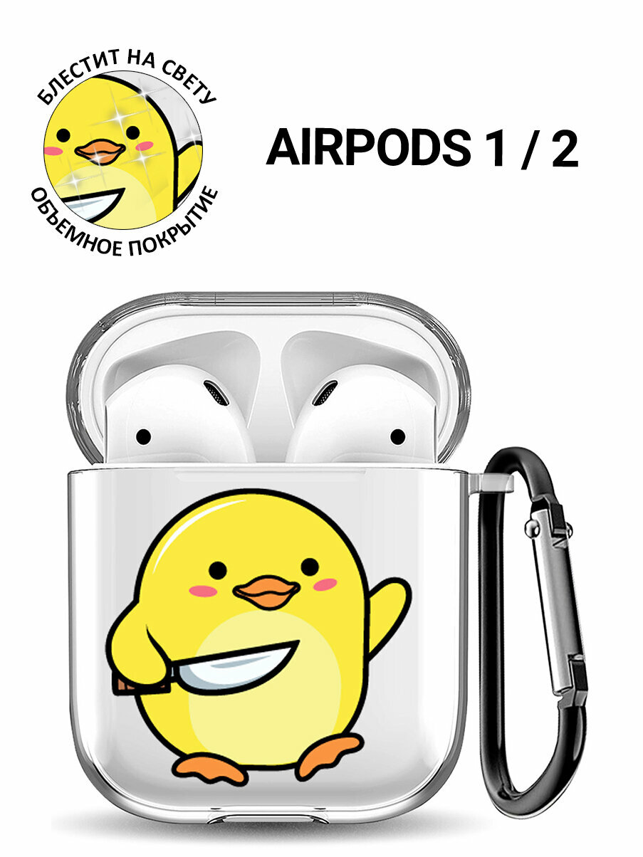 Отзывы на Прозрачный чехол для наушников Apple AirPods 1 / 2 с 3D принтом "Chick With Knife"