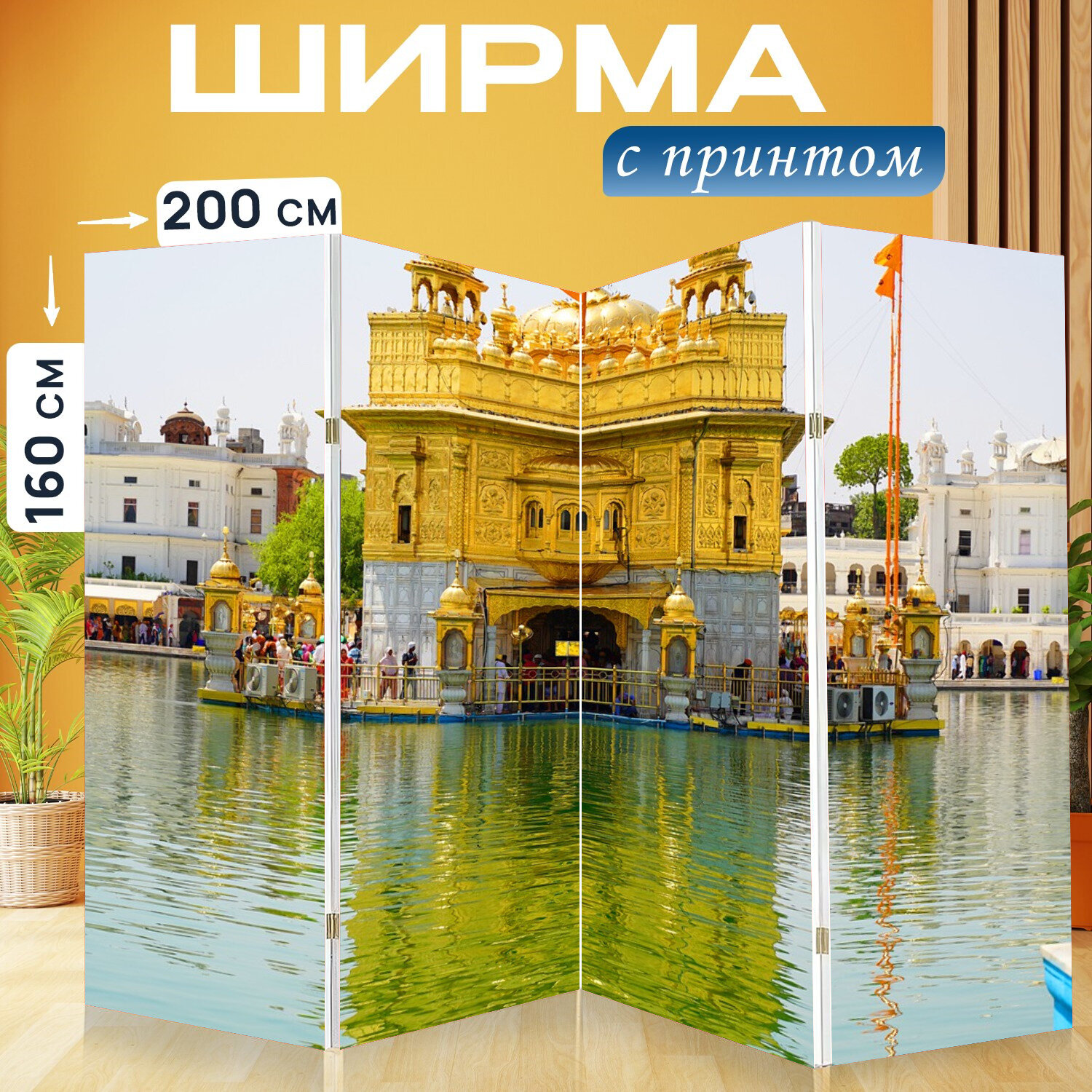 Ширма перегородка с принтом "Архитектуры, индийский, поклонение" на холсте - 200x160 см. для зонирования, раскладная информация: