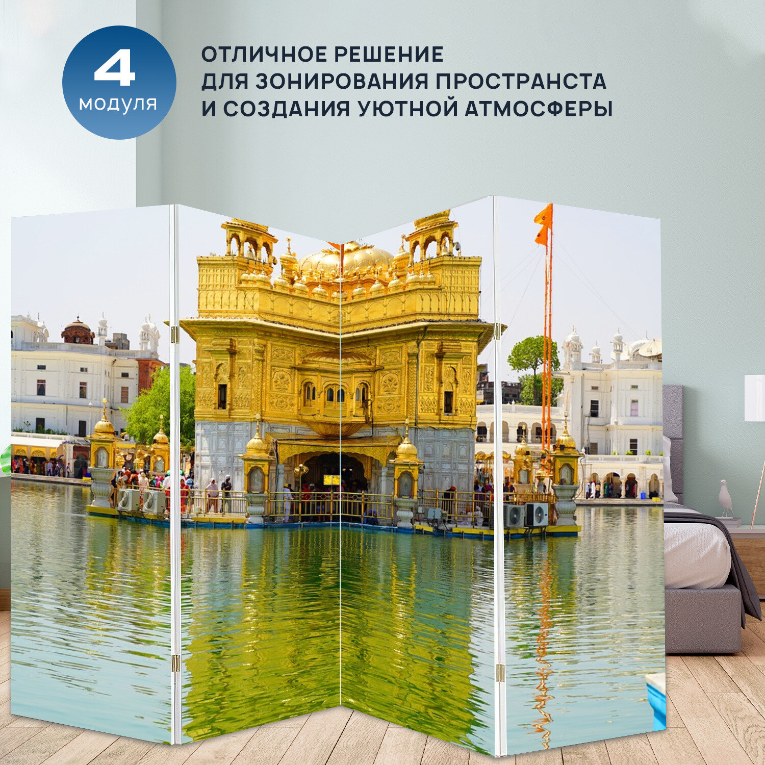 Отзывы на Ширма перегородка с принтом "Архитектуры, индийский, поклонение" на холсте - 200x160 см. для зонирования, раскладная