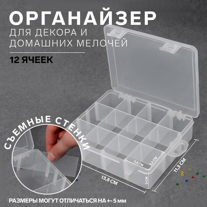 10 цен на Контейнер для декора, с подвесом, передвижные ячейки, 12 ячеек, 13,8 × 11,3 см, цвет прозрачный