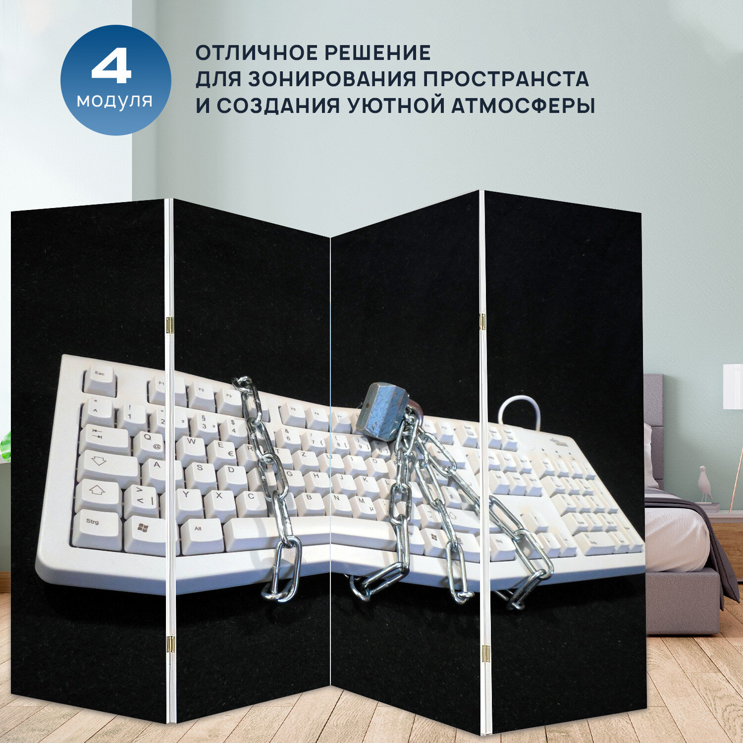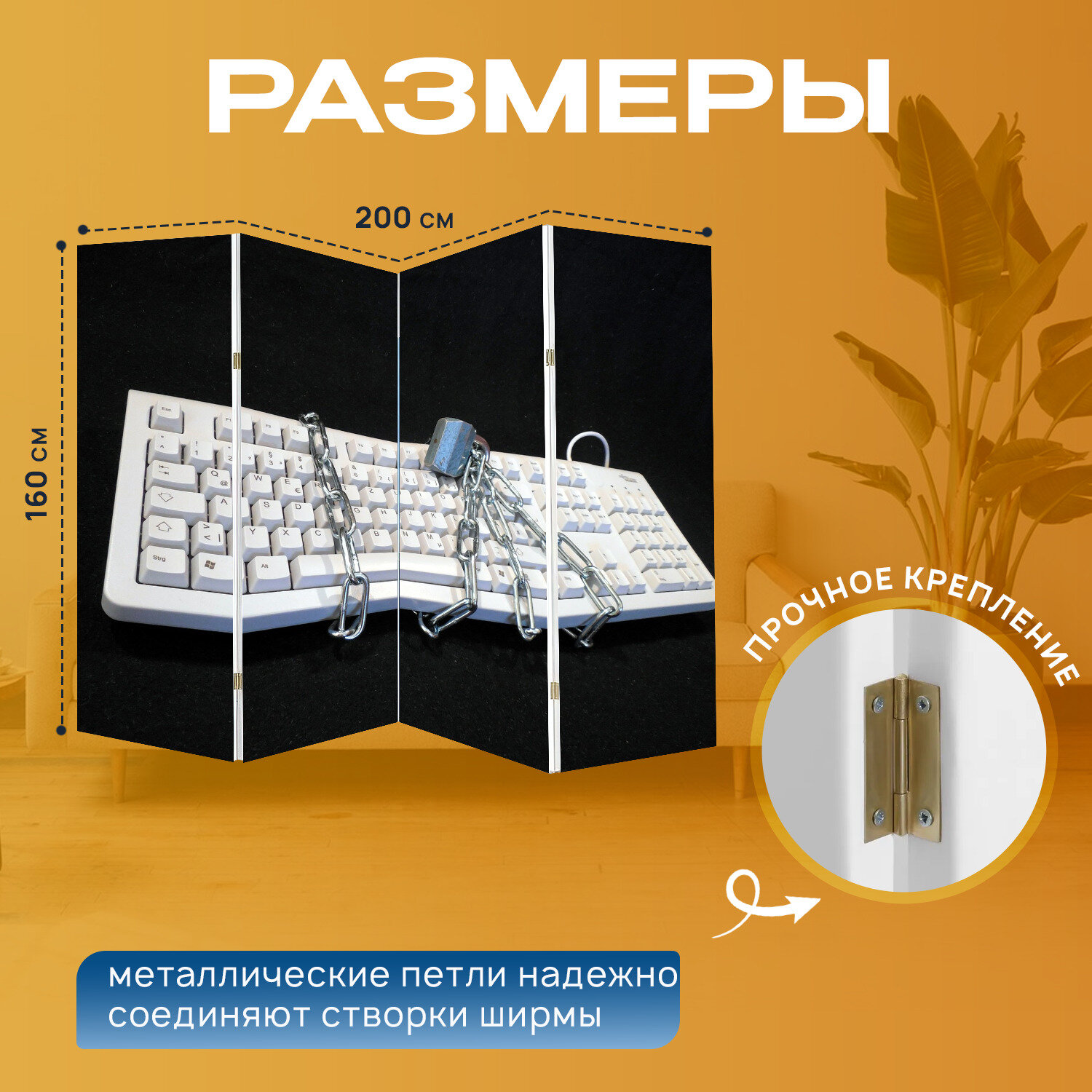 Ширма перегородка с принтом "Политика конфиденциальности, заперто, клавиатура" на холсте - 200x160 см. для зонирования, раскладная информация: