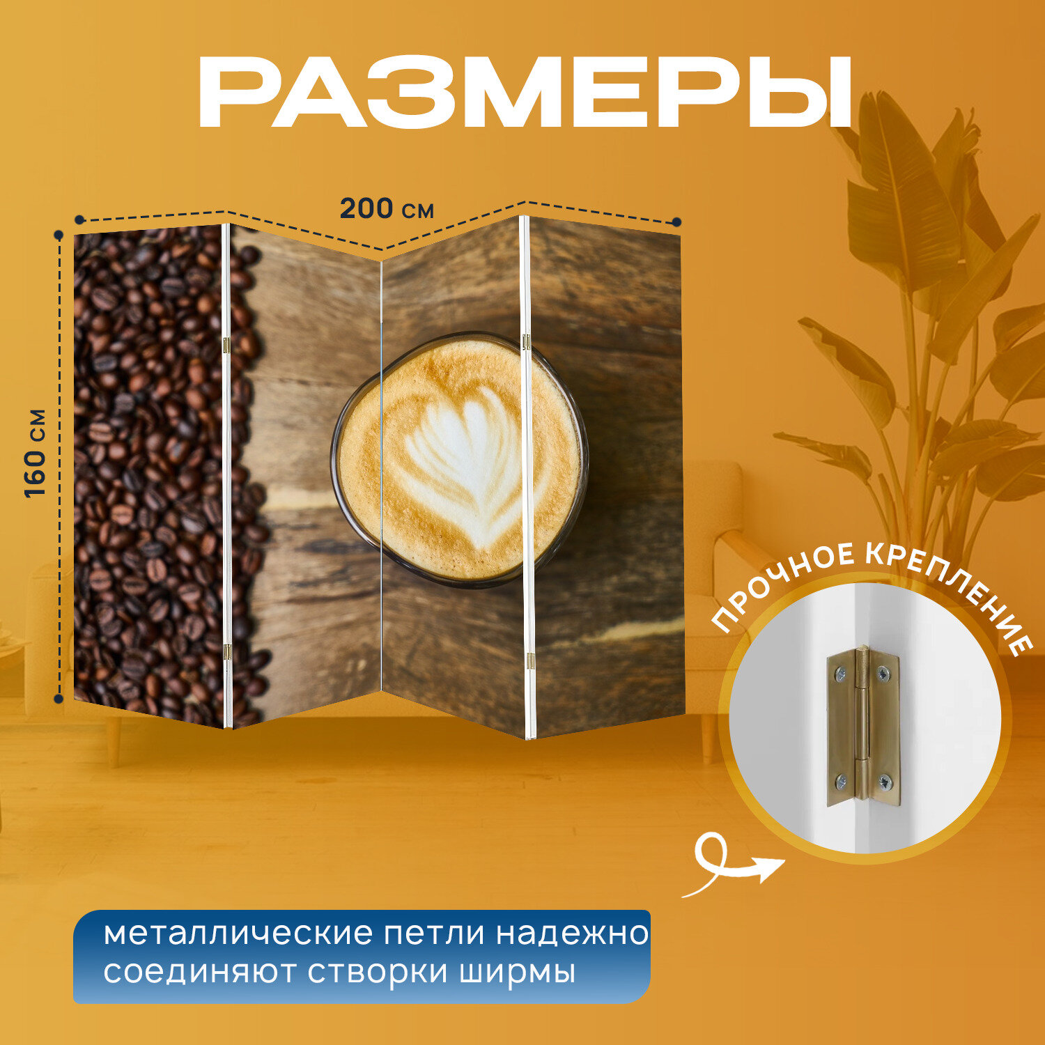 Отзывы на Ширма перегородка с принтом "Кофе, кофеин, чашка" на холсте - 200x160 см. для зонирования, раскладная