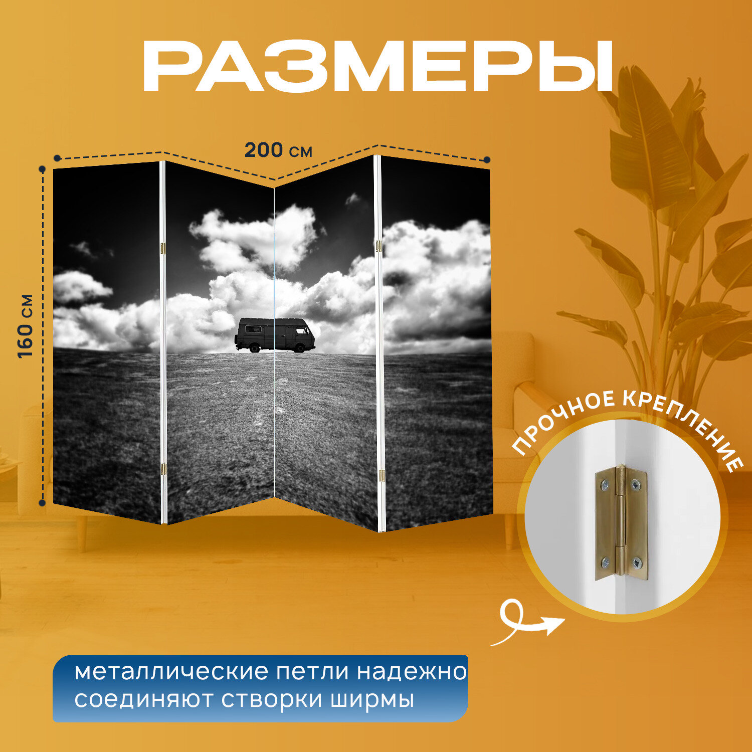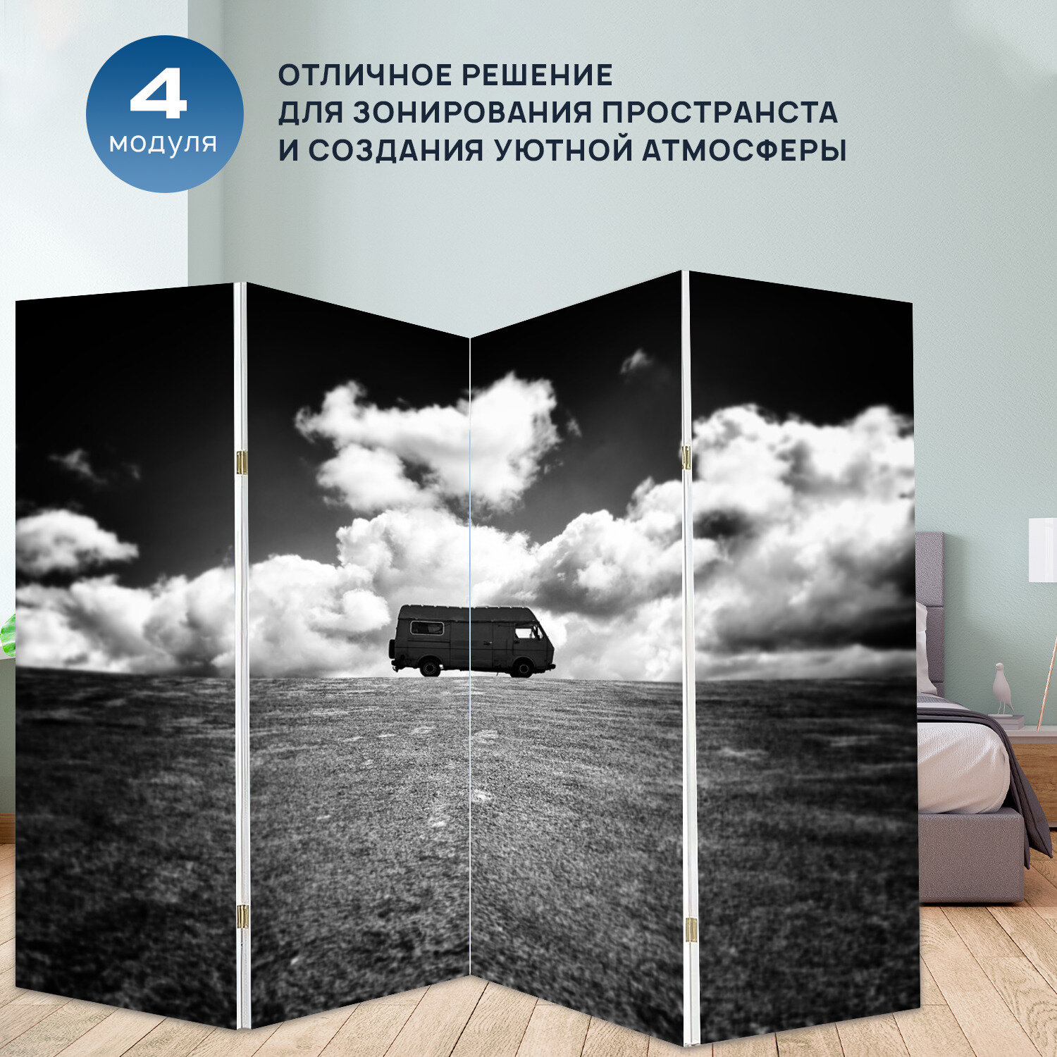 Отзывы на Ширма перегородка с принтом "Фургон, поле, трава" на холсте - 200x160 см. для зонирования, раскладная