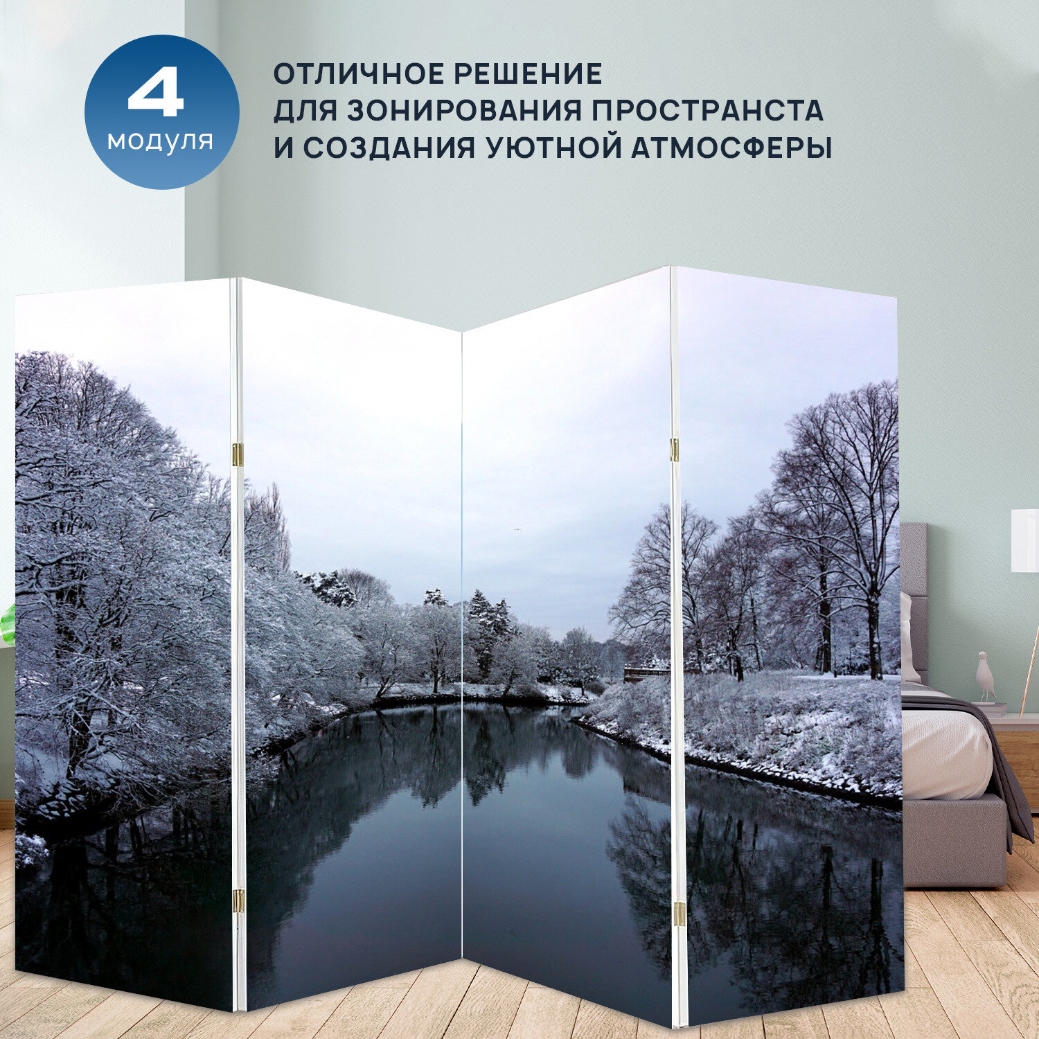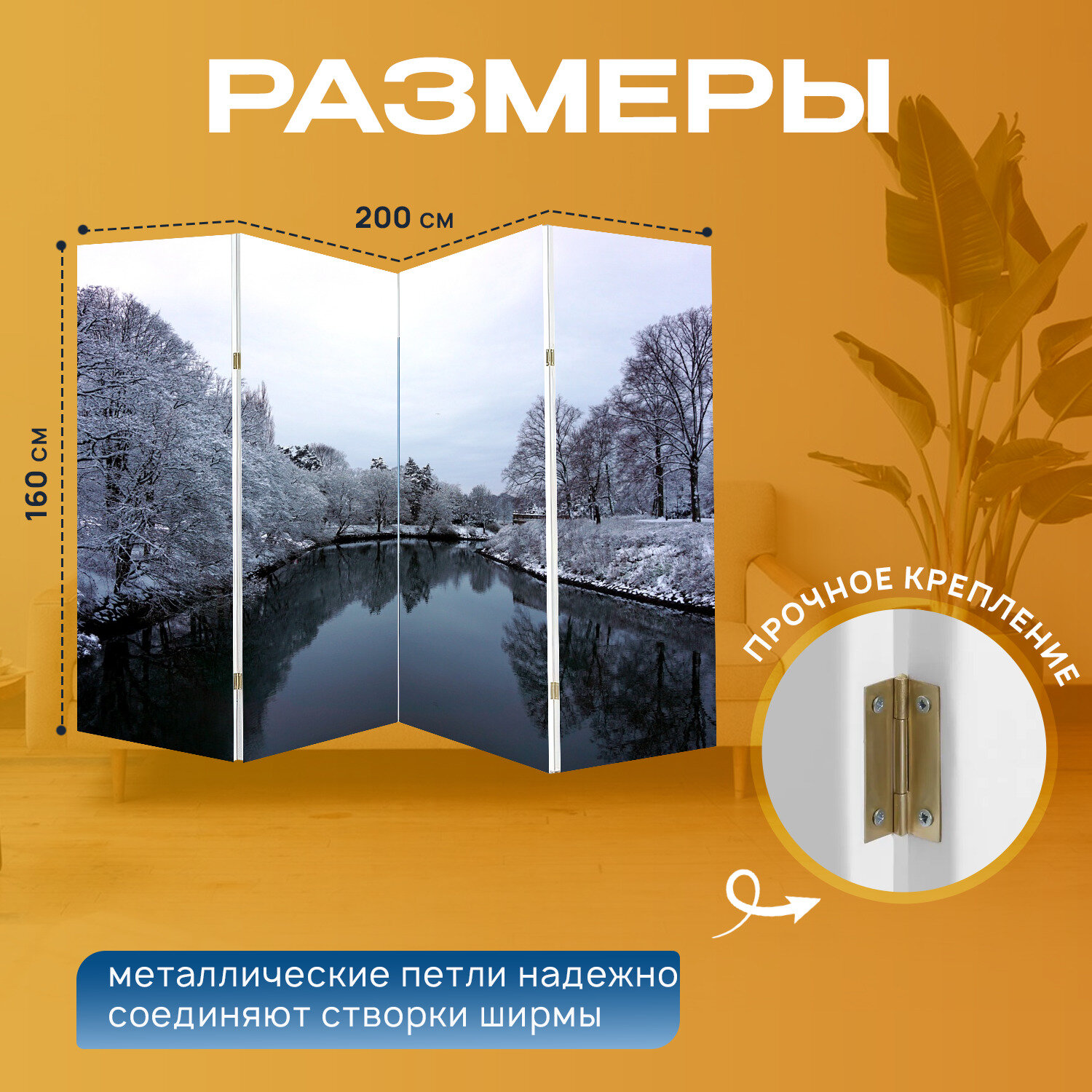 Ширма перегородка с принтом "Мальмё, зима, швеция" на холсте - 200x160 см. для зонирования, раскладная информация: