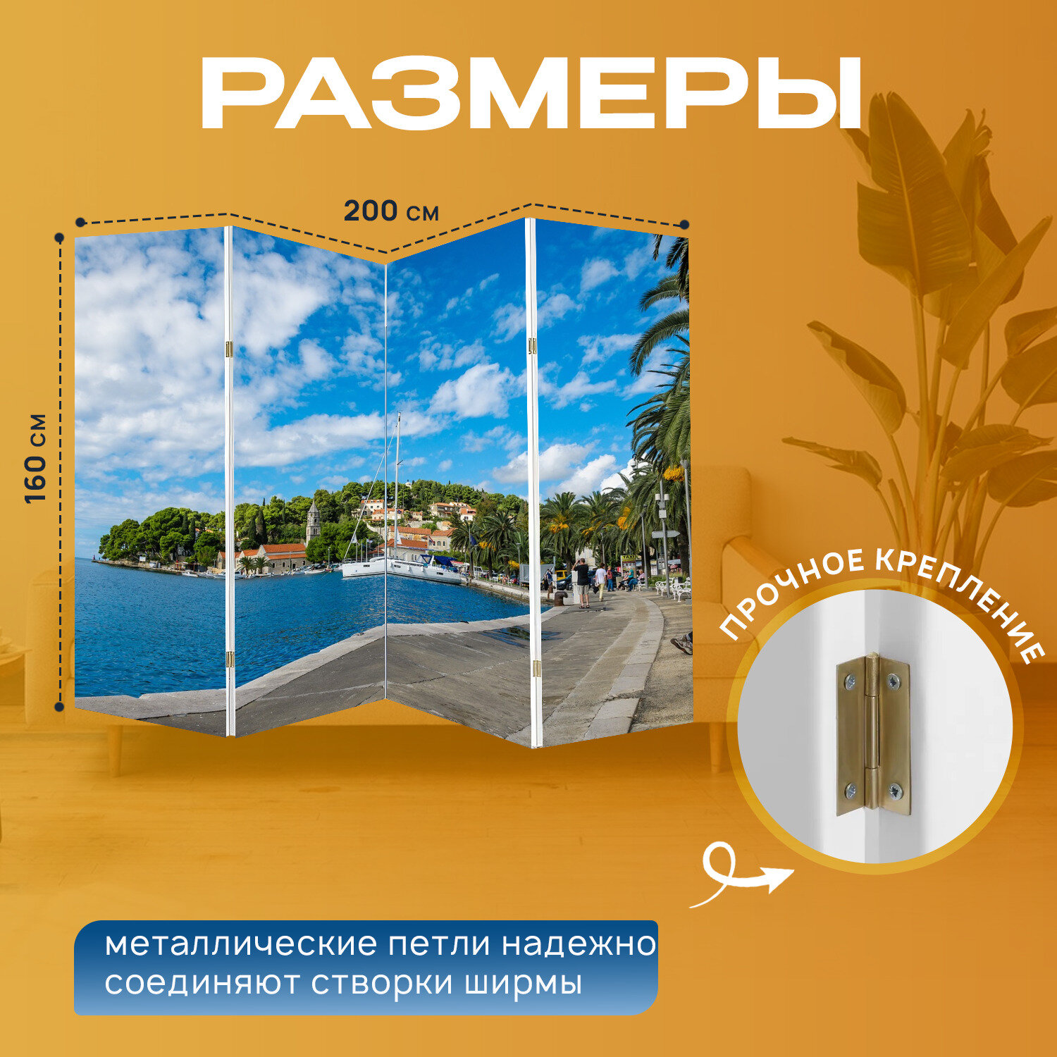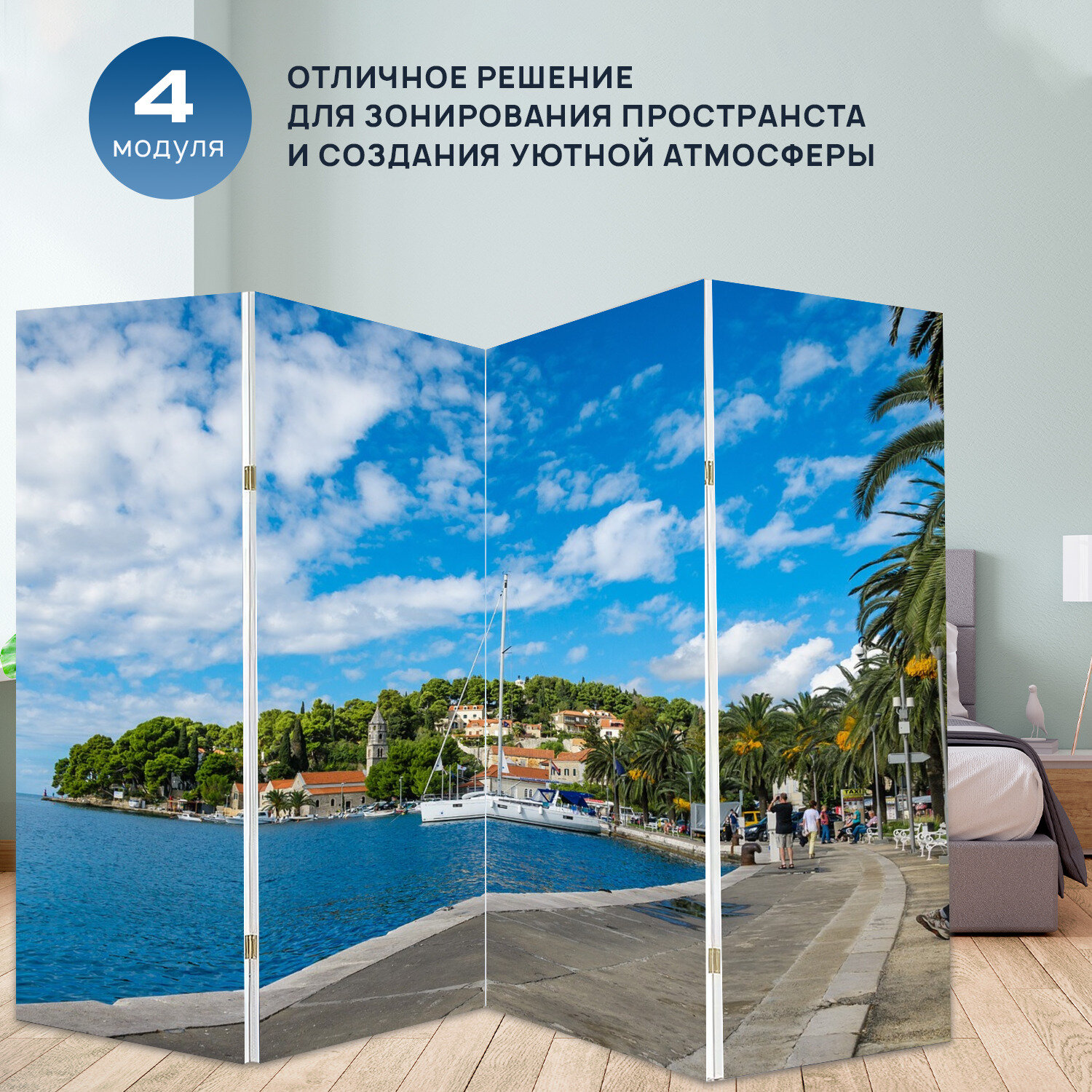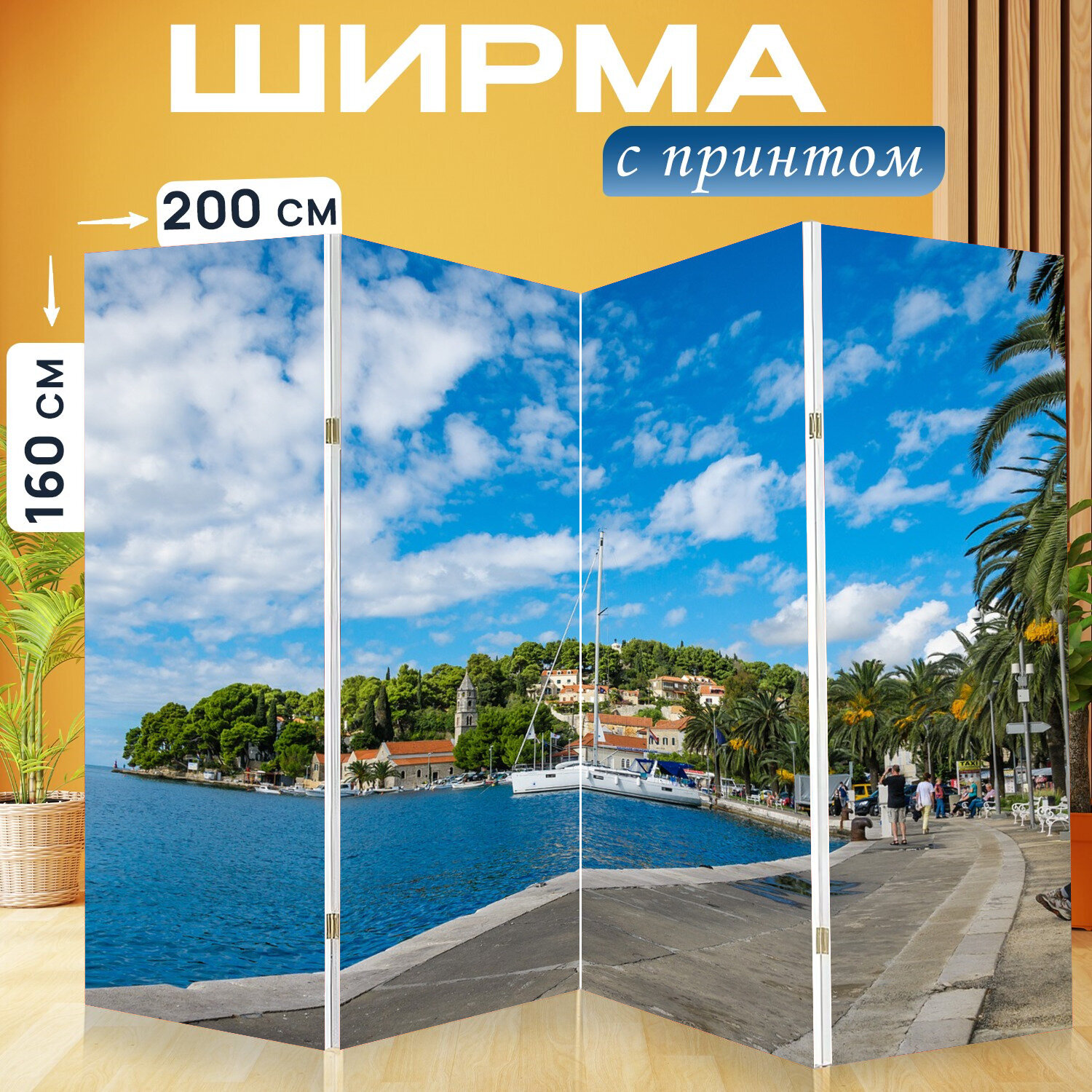 Ширма перегородка с принтом "Кавтат, хорватия, адриатическое море" на холсте - 200x160 см. для зонирования, раскладная информация:
