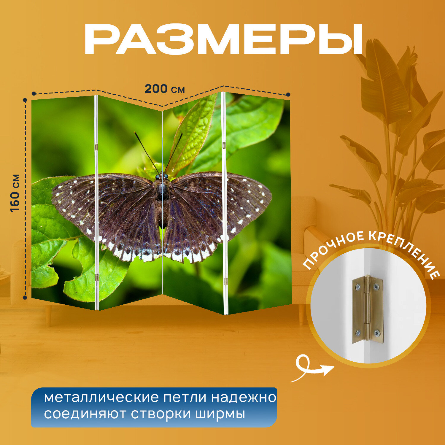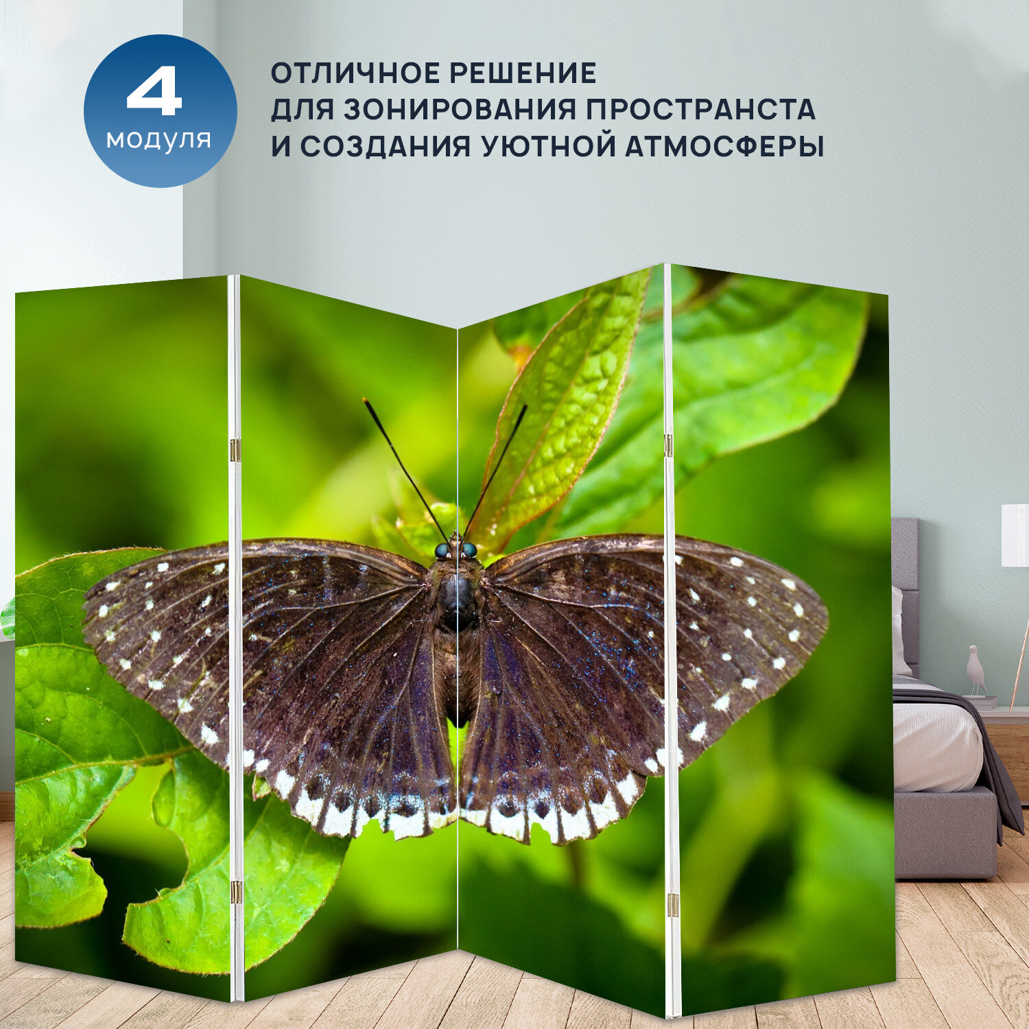 Отзывы на Ширма перегородка с принтом "Насекомое, ледник бабочка изумруд, вонг нимфалид" на холсте - 200x160 см. для зонирования, раскладная