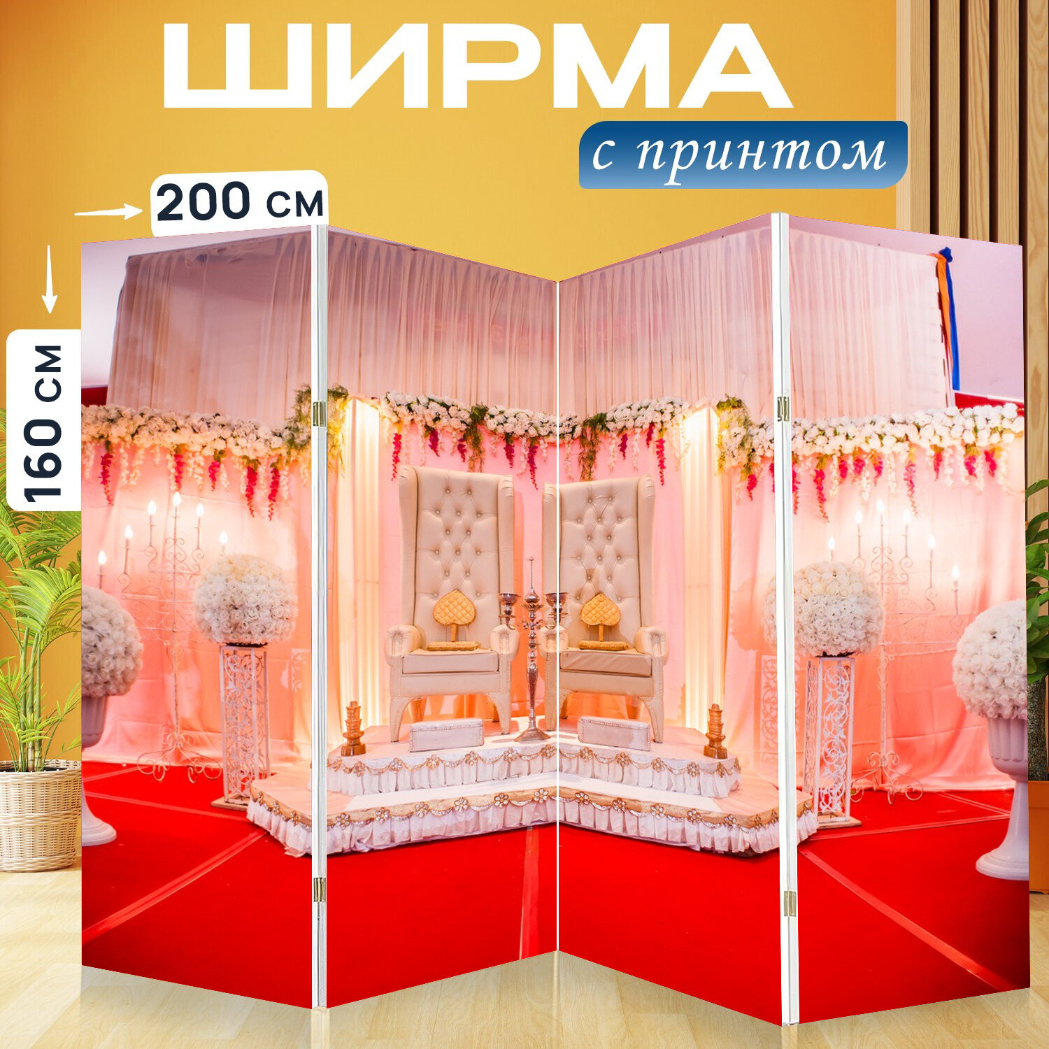 10 цен на Ширма перегородка с принтом "Свадьба, интерьер, дизайн" на холсте - 200x160 см. для зонирования, раскладная