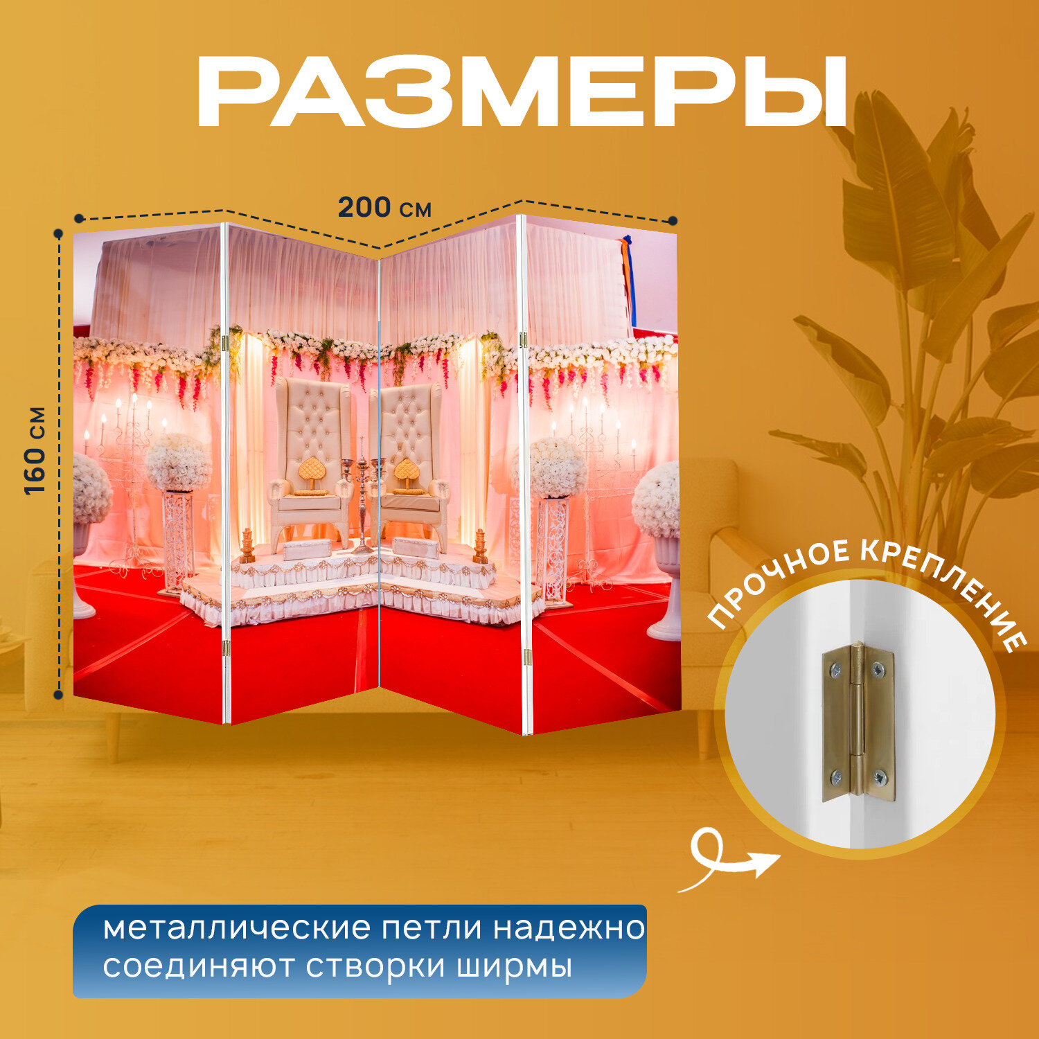 Ширма перегородка с принтом "Свадьба, интерьер, дизайн" на холсте - 200x160 см. для зонирования, раскладная информация: