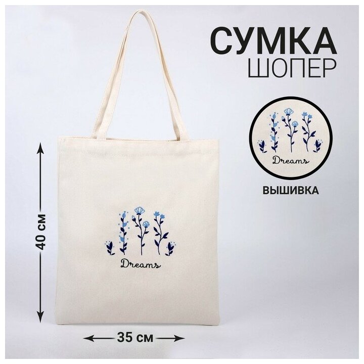 Сумка шопер Dreams, 35 х 0,5 х 40 см, вышивка, белый информация: