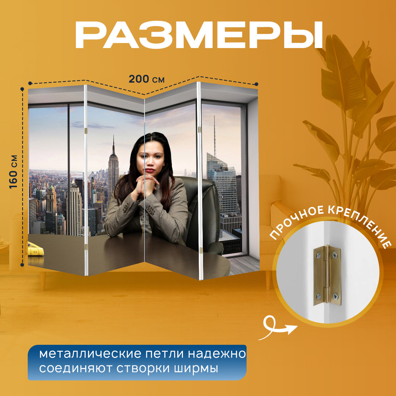 Ширма перегородка с принтом "Азиатский, бизнес, женщина" на холсте - 200x160 см. для зонирования, раскладная информация: