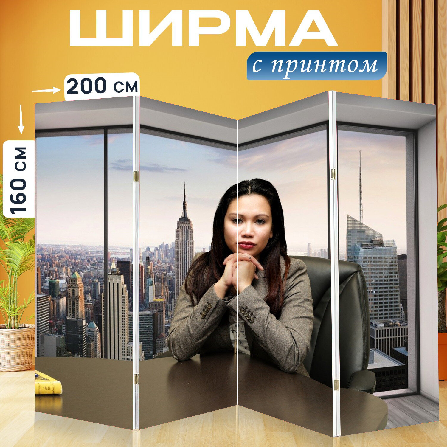 10 цен на Ширма перегородка с принтом "Азиатский, бизнес, женщина" на холсте - 200x160 см. для зонирования, раскладная