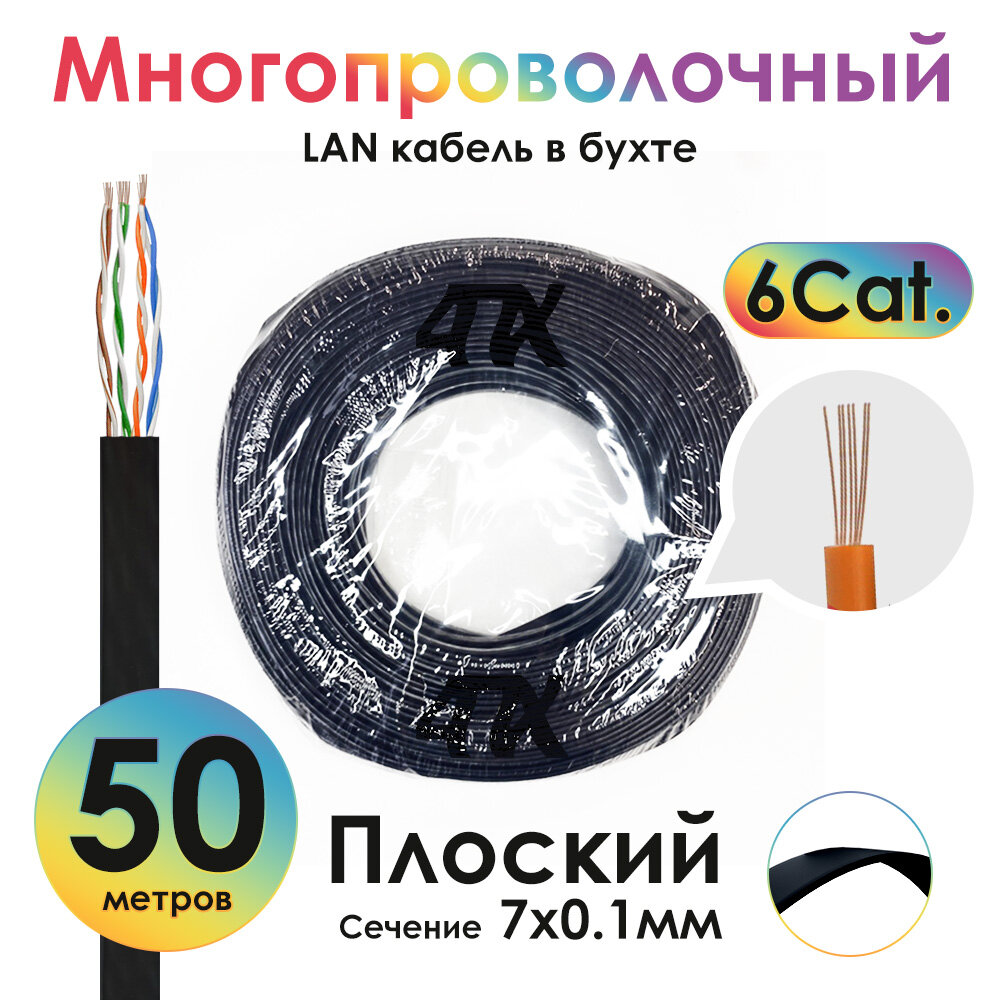 10 цен на Кабель LAN витая пара LSZH плоский UTP в бухте CAT6 многопроволочный (4PH-LN1) черный 50.0м