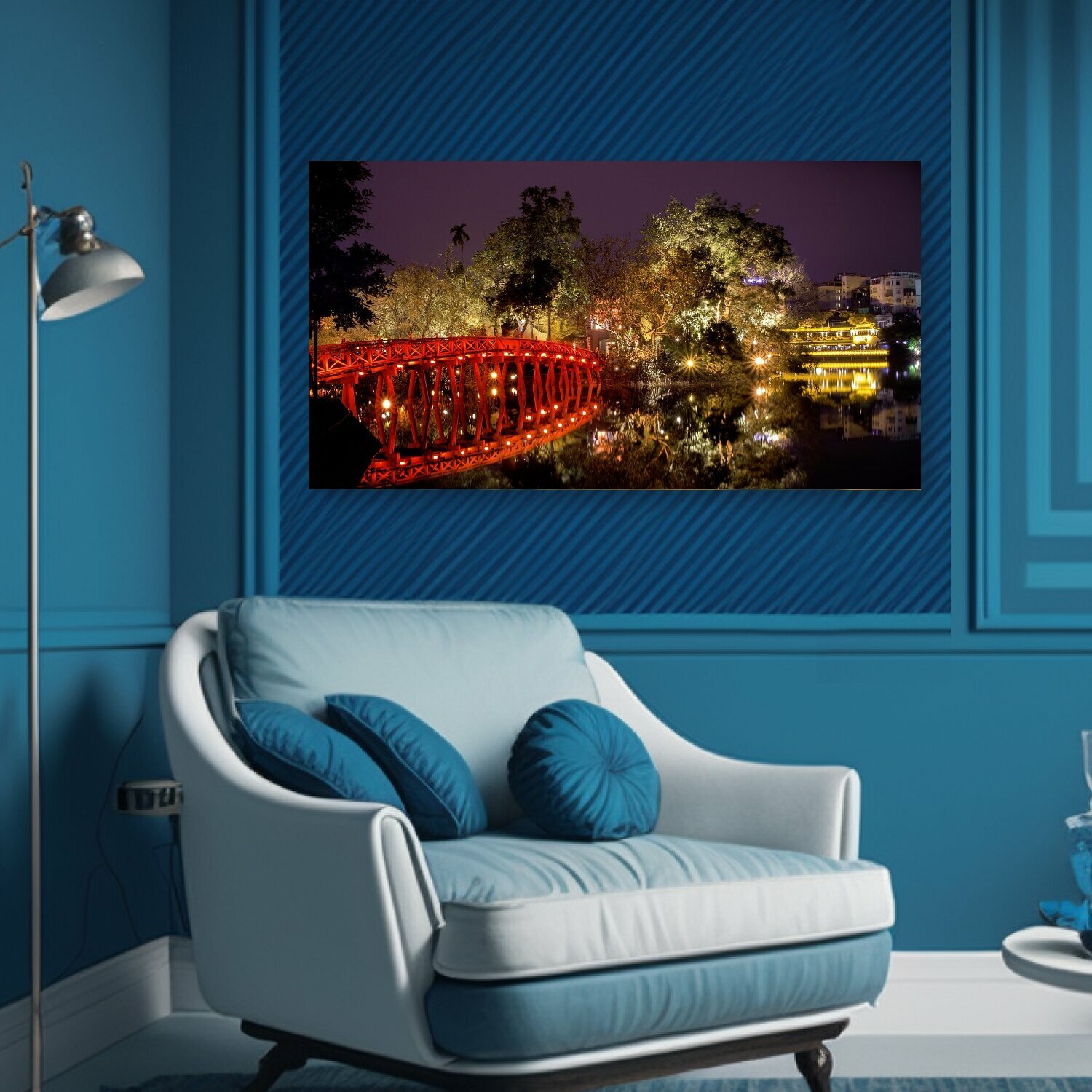 10 цен на Картина на холсте "Туе юк мост, счастливое озеро, ханой" на подрамнике 75х40 см. для интерьера